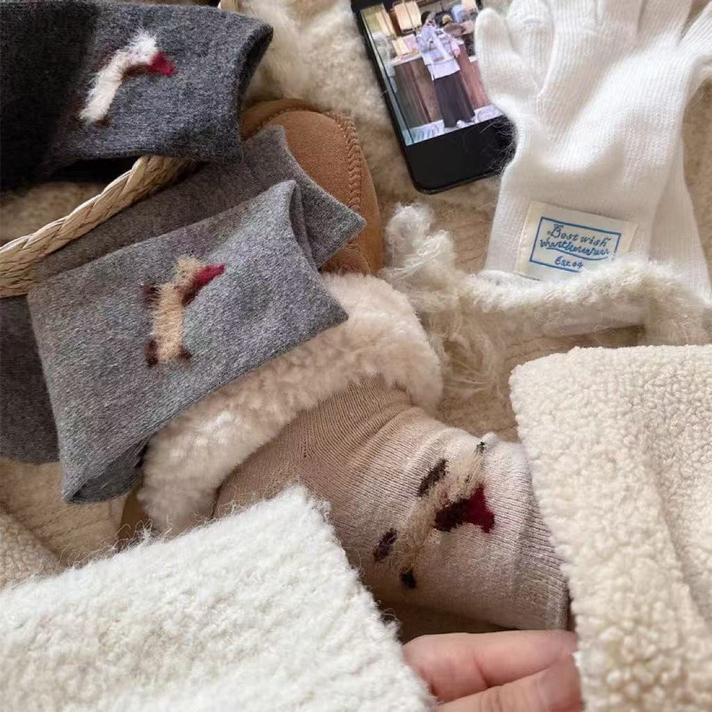 틈새 회색 가을 및 겨울 울 중간 튜브 양말 강아지 양말 대학 따뜻한 귀여운 소녀 높은 허리 더미 양말