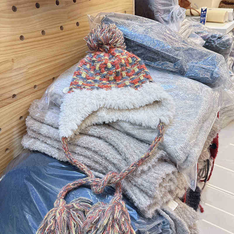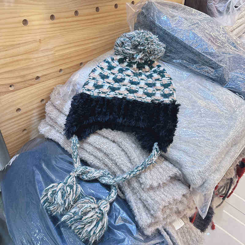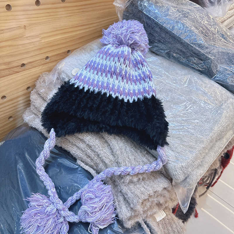 틈새 복고풍 자카드 모피 볼 얼굴 작은 니트 모자 여성의 2024 년 새 가을과 겨울 한국 따뜻한 귀 보호 울 모자스토어 가기