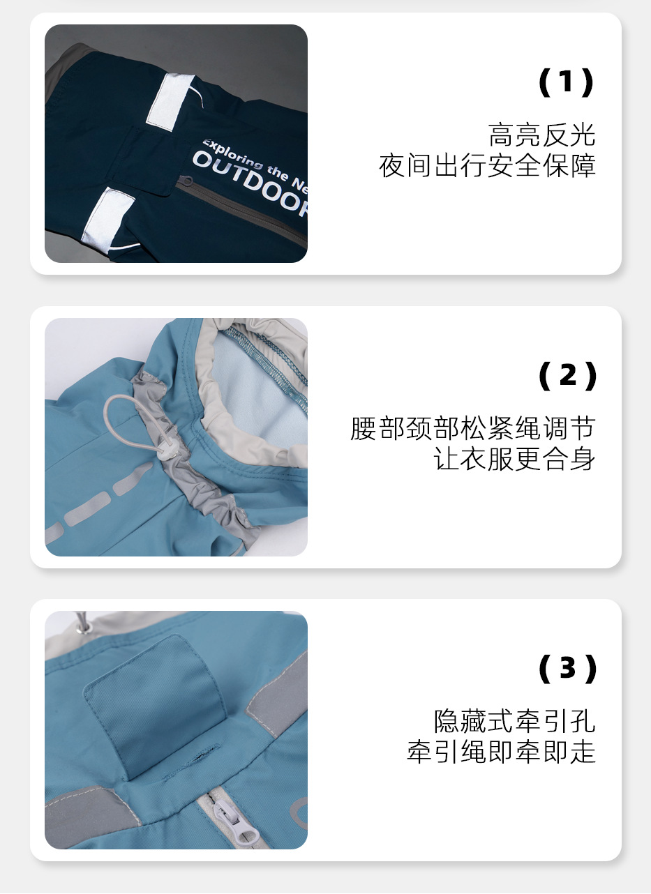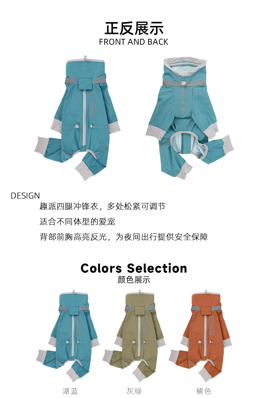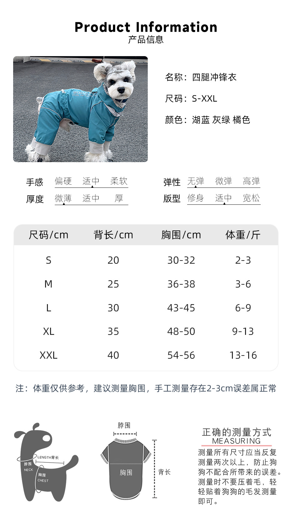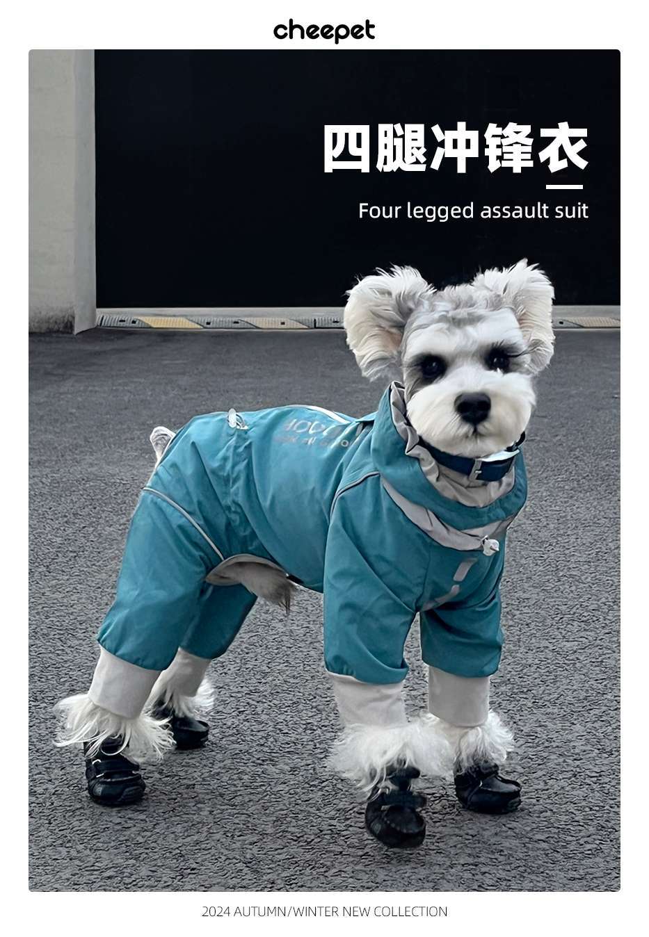 가을과 겨울 애완 동물 옷 개 지퍼 반사 방수 및 방진 4 개 다리 야외 충전 옷