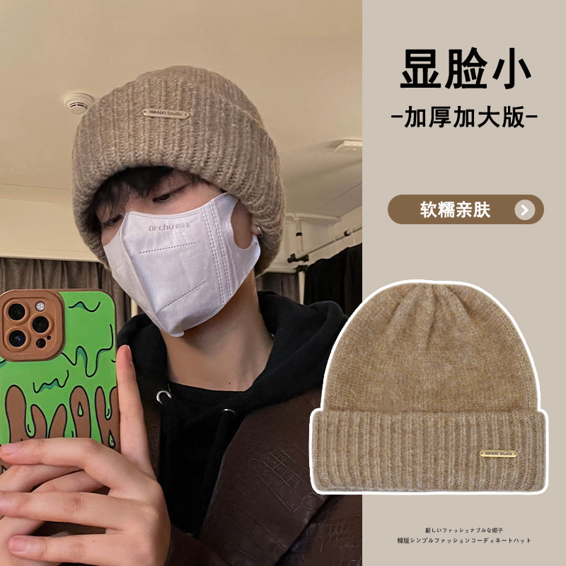 남자 모자 겨울 새로운 차가운 모자 큰 머리 울 모자 남자의 유행 브랜드 귀 보호 모자 머리를 덮는 모자 니트 모자 남자스토어 가기