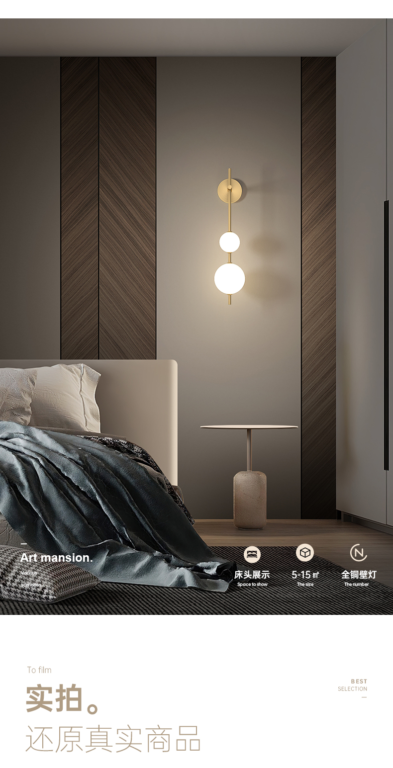 모든 구리 침실 침실 램프 현대 노르딕 디자이너 빛 고급 거실 뒷벽 계단 통로 전시관 벽 램프스토어 가기