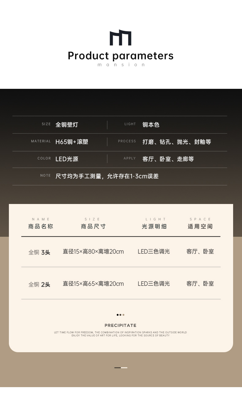 • 구리색 2헤드 3톤 조명 [전체 구리 소재]