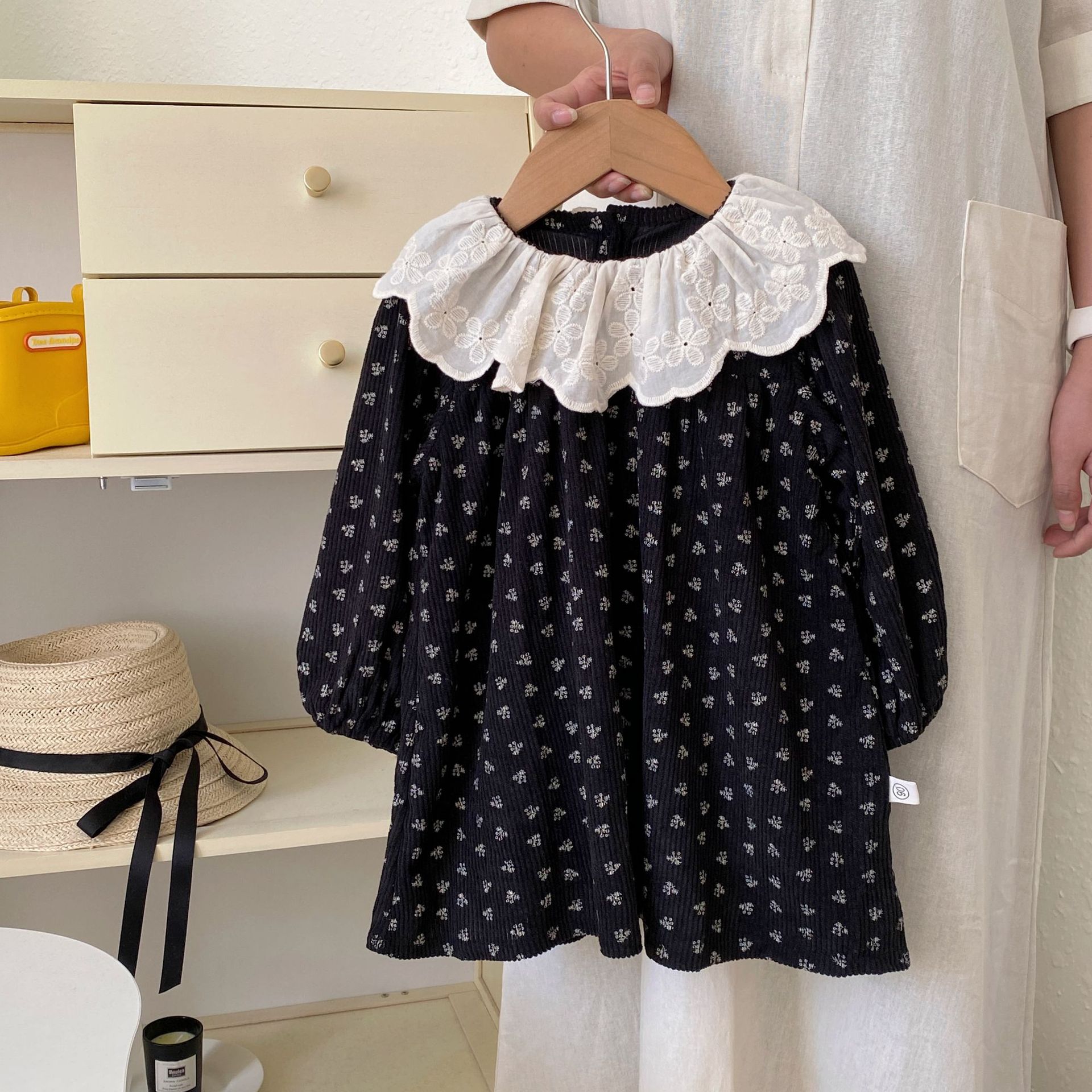 2025년 신상 가을 여아 원피스, 여자 아기 패션 단색 골지 러플 스티치 원피스, 돌잔치 원피스스토어 가기