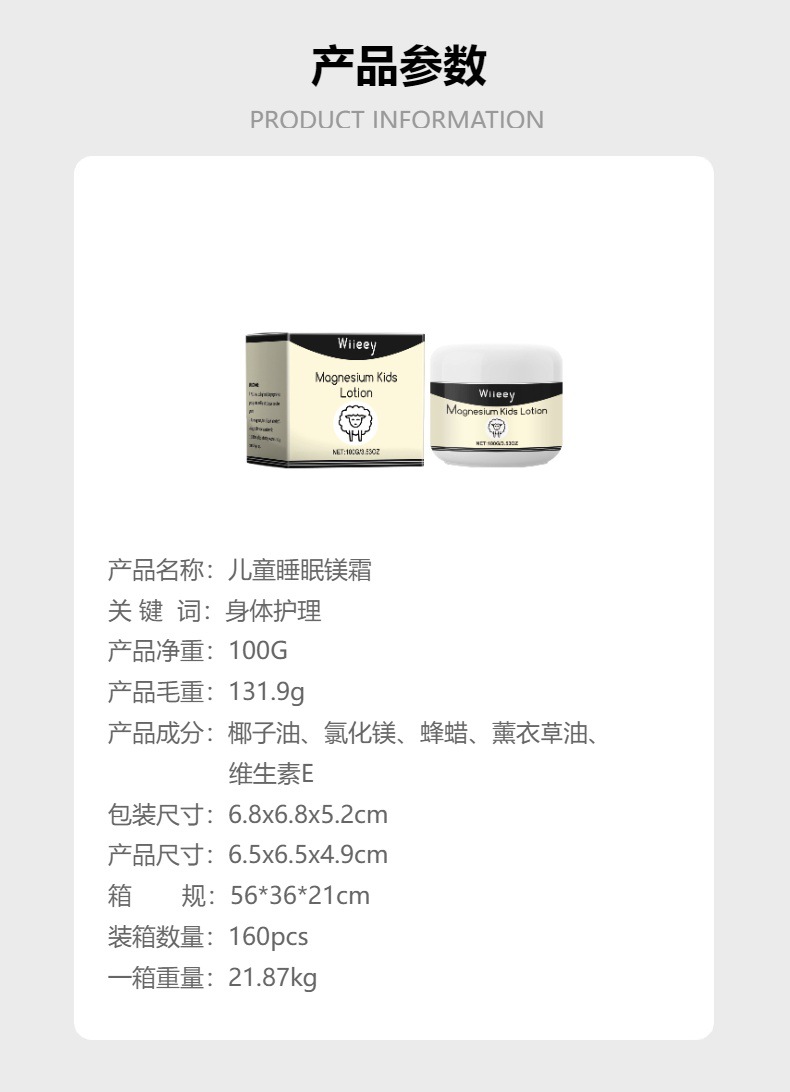 WIIEEY 어린이 수면 마그네슘 크림 보습 부드러운 케어 어린이 바디 스킨 케어 수면 크림
