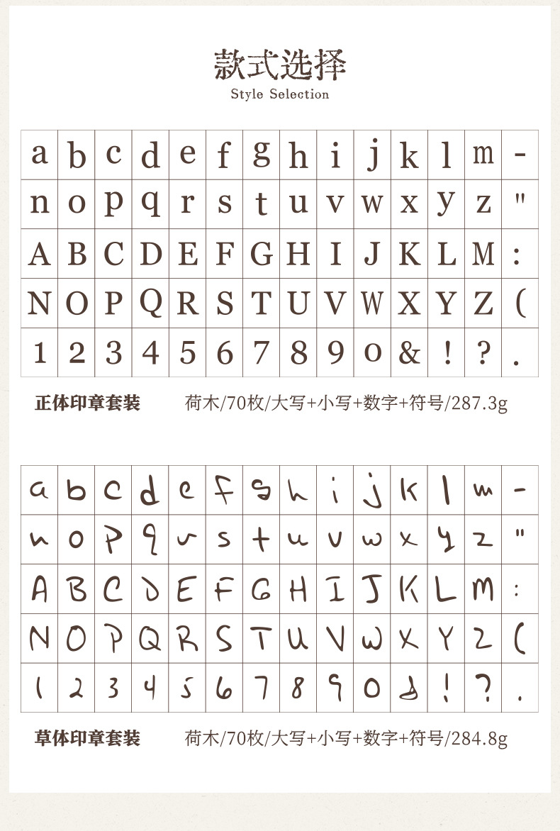 70 개의 복고풍 영숫자 나무 상자 물개 세트 상자 상단 및 하단 문자 일반 바디 잔디 국경 간 손 계정 씰
