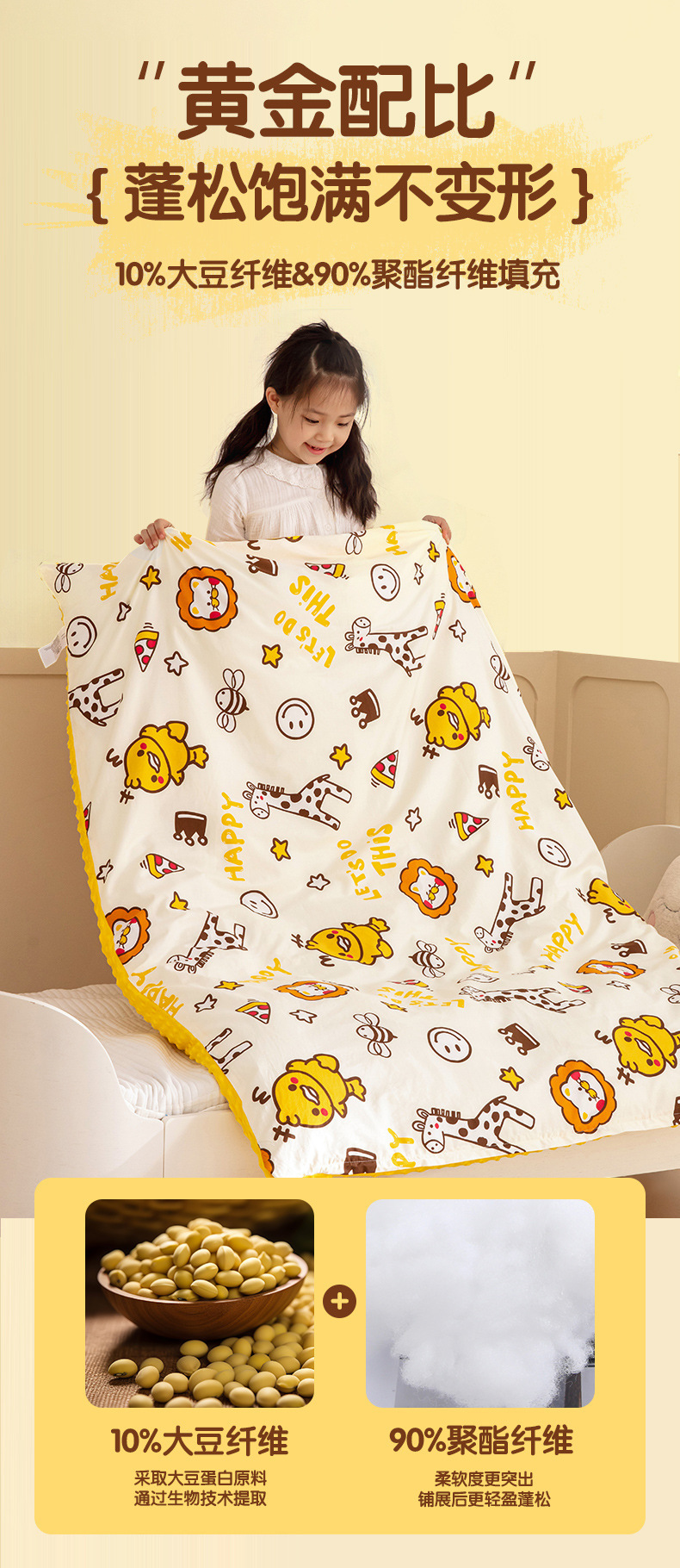 가을과 겨울 면화 어린이 콩 이불 두꺼운 콩 섬유 겨울 이불 분리 가능한 만화 순면 학생 이불