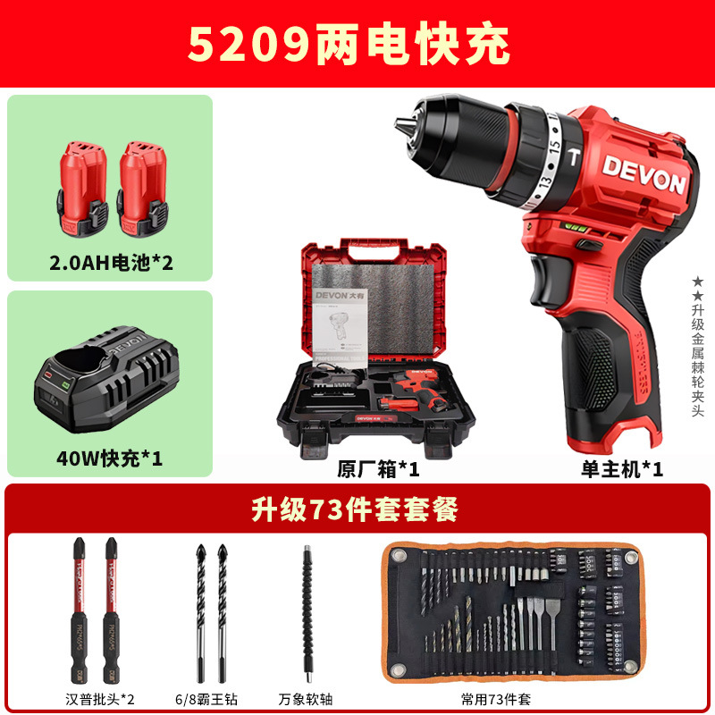 • 50Niu 5209 임팩트 드릴 [배터리 2개 고속 충전] 73피스 액세서리 세트 + 업그레이드된 메탈 척