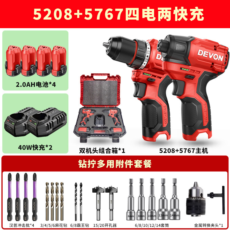 • 드릴과 나사 조합 5767+5208 [배터리 4개, 고속 충전 2개] 고급 액세서리 + 콤비네이션 박스 포함