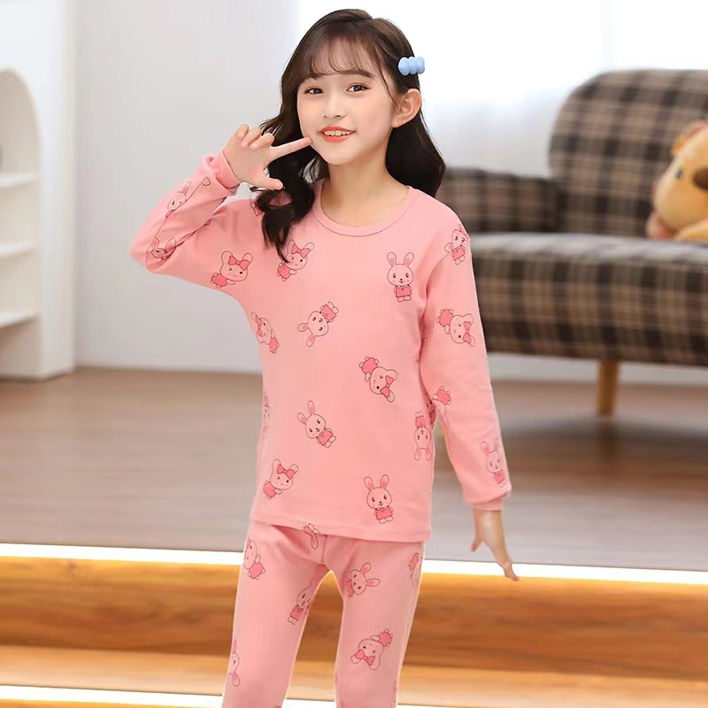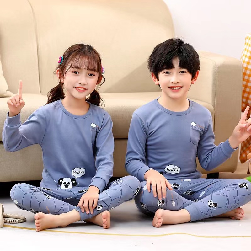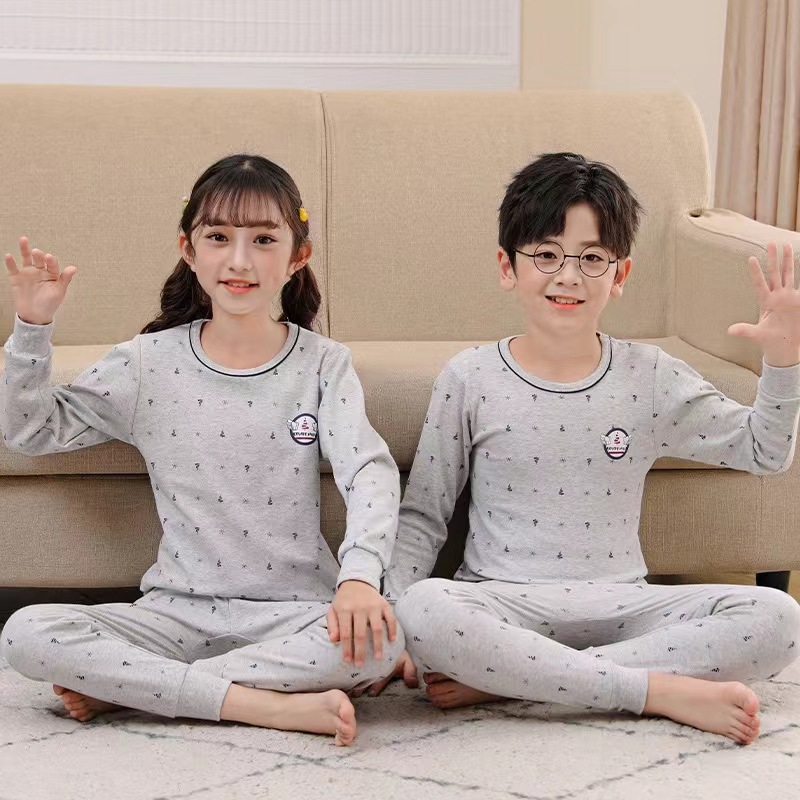 남학생과 여학생을위한 가을과 겨울 어린이 면화 속옷 세트 따뜻한 땀 흡수성 가을 옷과 바지 투피스 세트