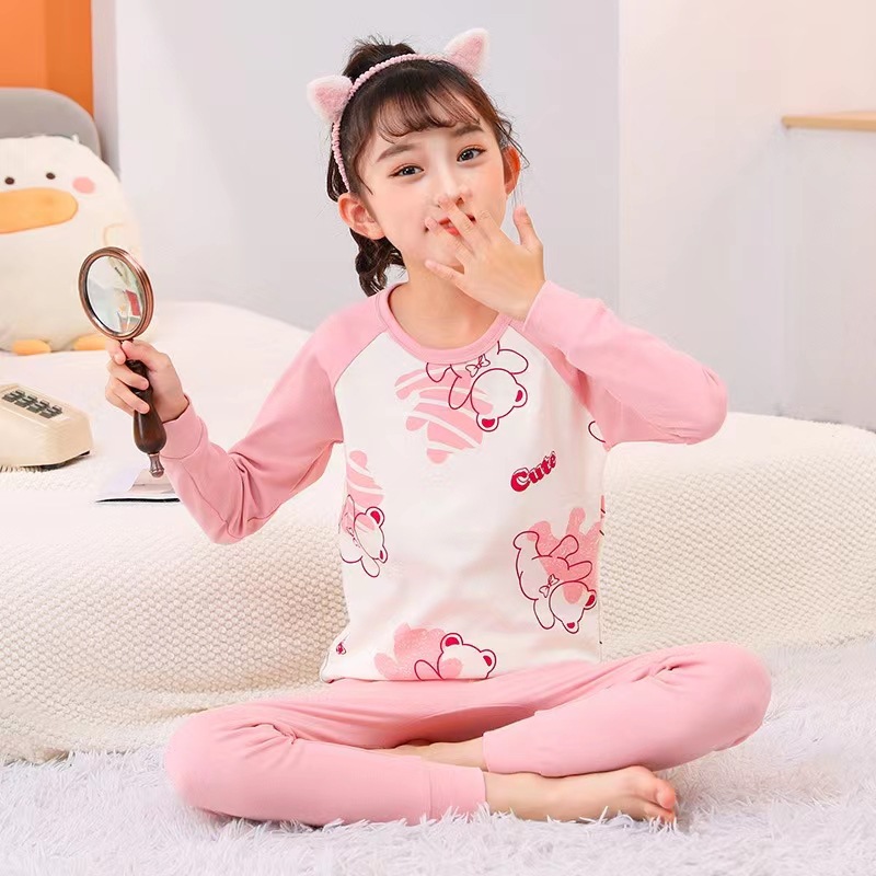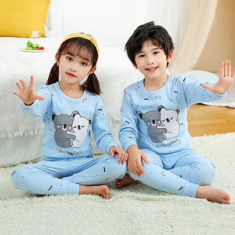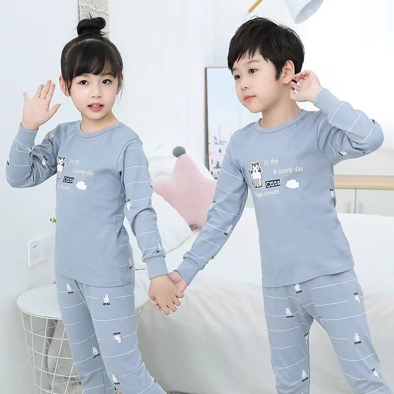남학생과 여학생을위한 가을과 겨울 어린이 면화 속옷 세트 따뜻한 땀 흡수성 가을 옷과 바지 투피스 세트스토어 가기