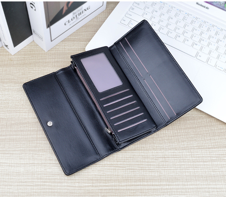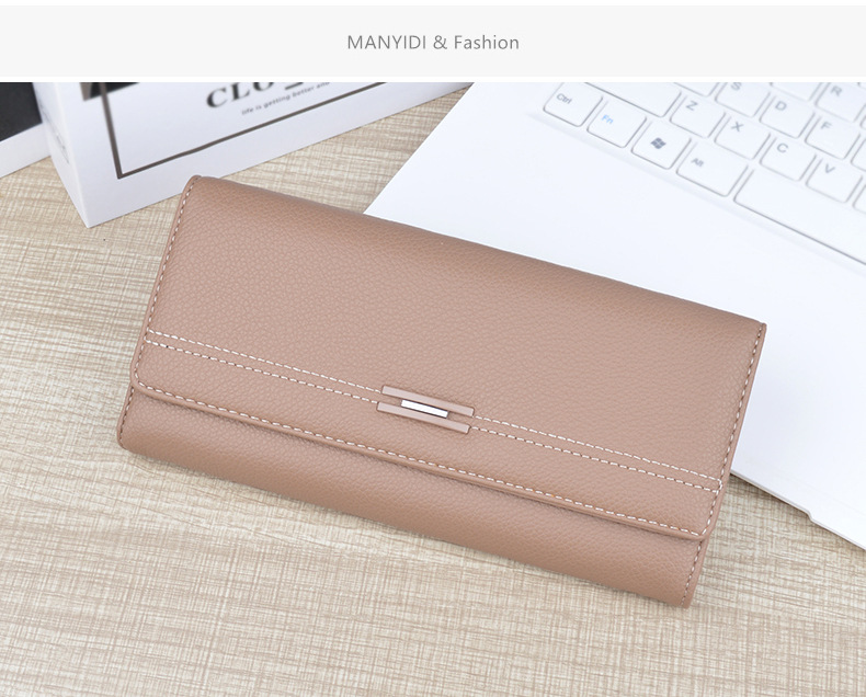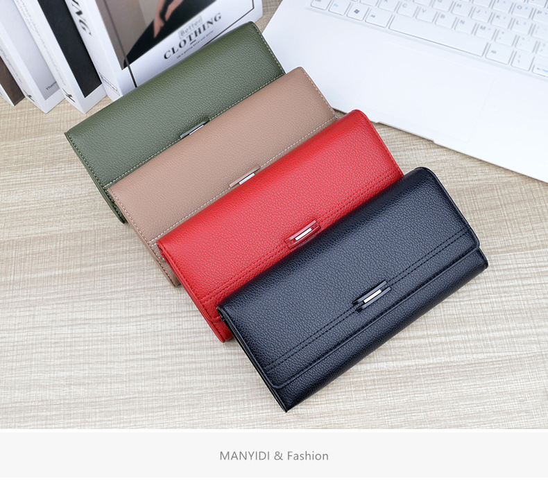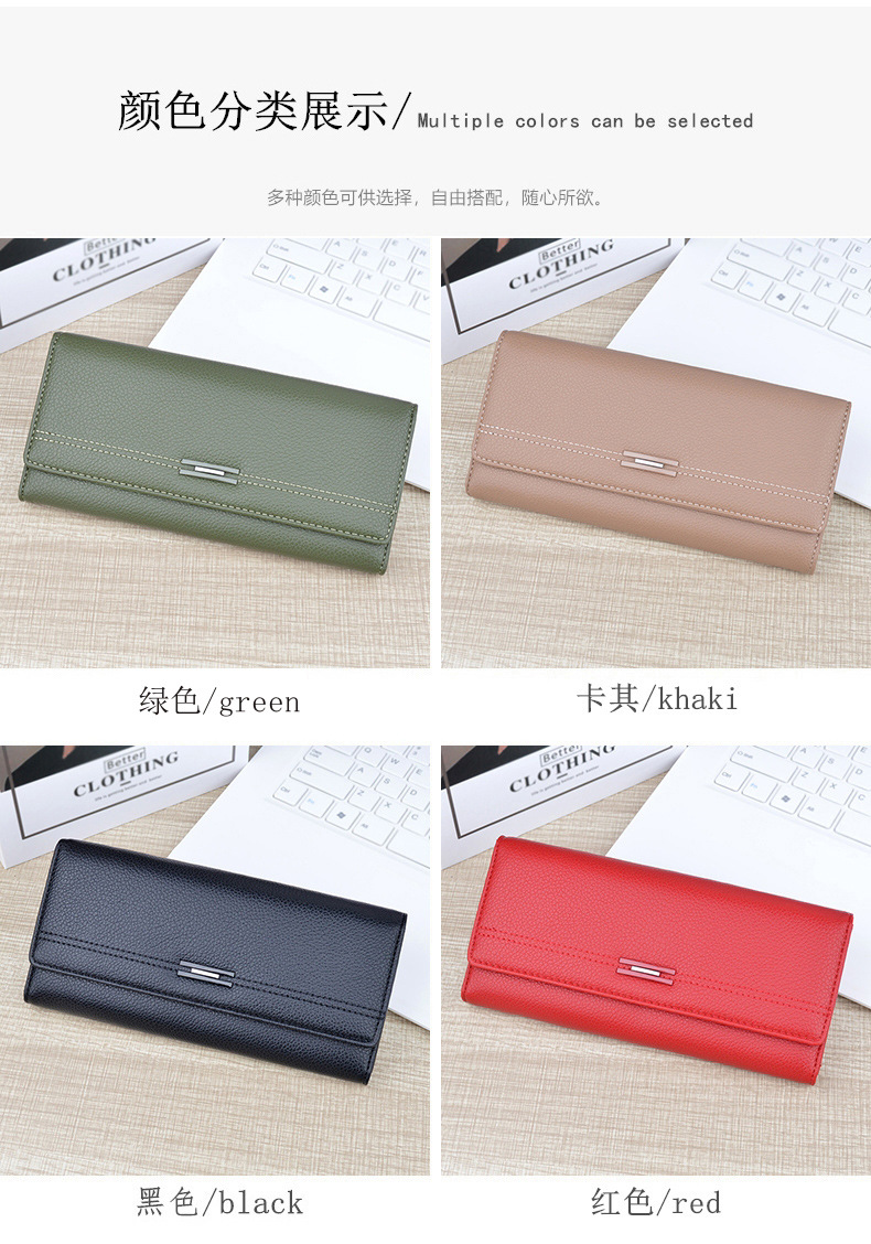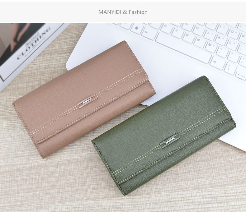 여성용 지갑 여성용 긴 멀티 카드 홀더 지갑 소프트 지갑 간단한 유행 대용량 3 접이식 클러치 백
