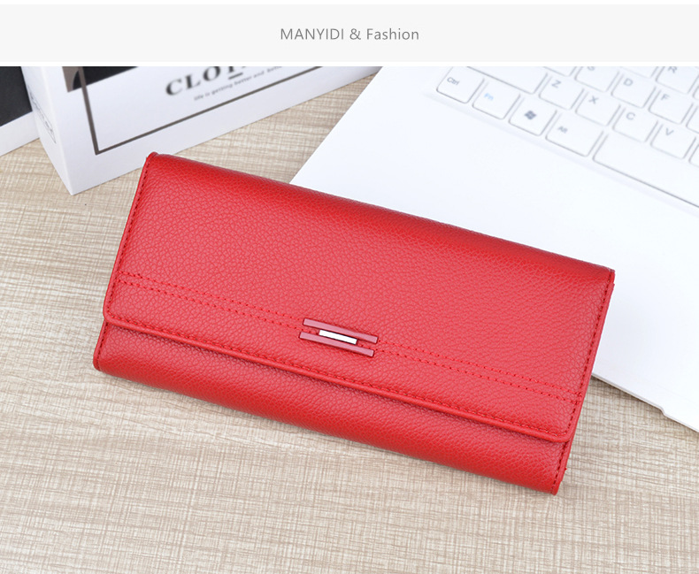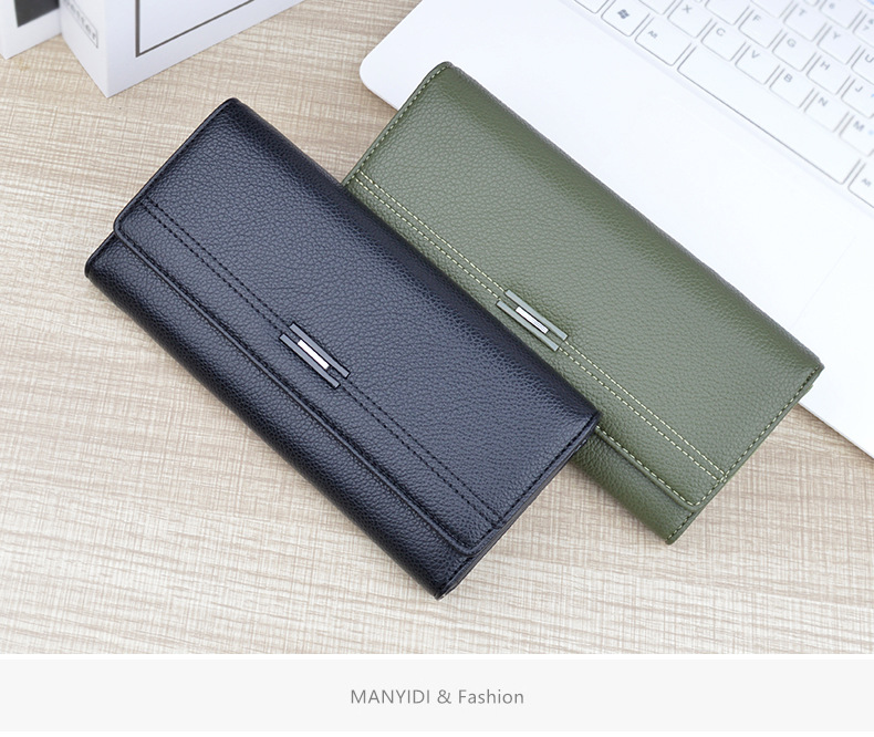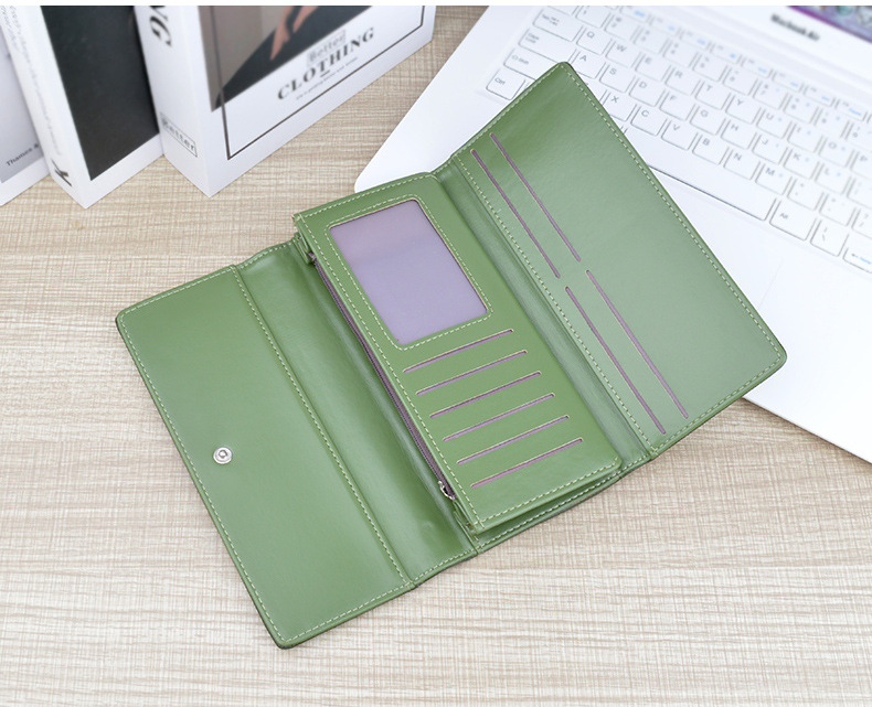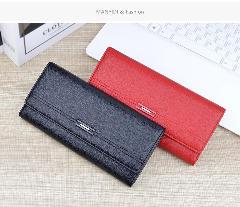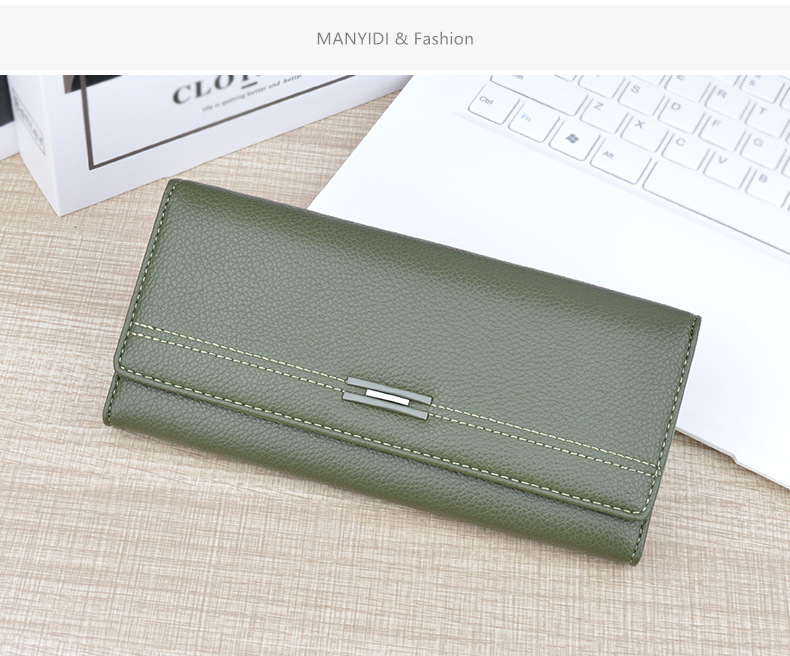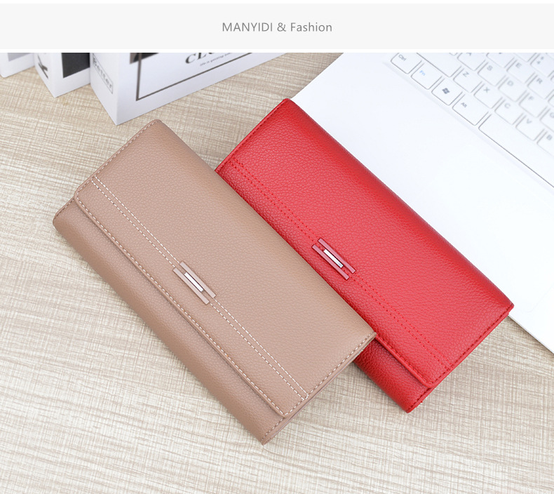 여성용 지갑 여성용 긴 멀티 카드 홀더 지갑 소프트 지갑 간단한 유행 대용량 3 접이식 클러치 백