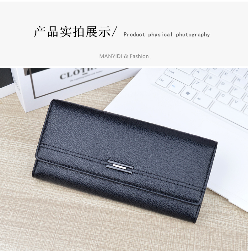 여성용 지갑 여성용 긴 멀티 카드 홀더 지갑 소프트 지갑 간단한 유행 대용량 3 접이식 클러치 백스토어 가기