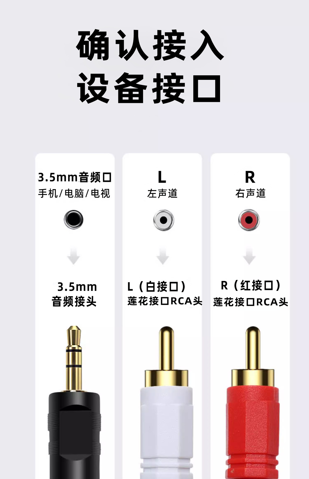 用途:适用于计算机,MP3 DVD CD机 电视机 收音机 电脑与功放 音箱之间的连接并传输它们的音频信号