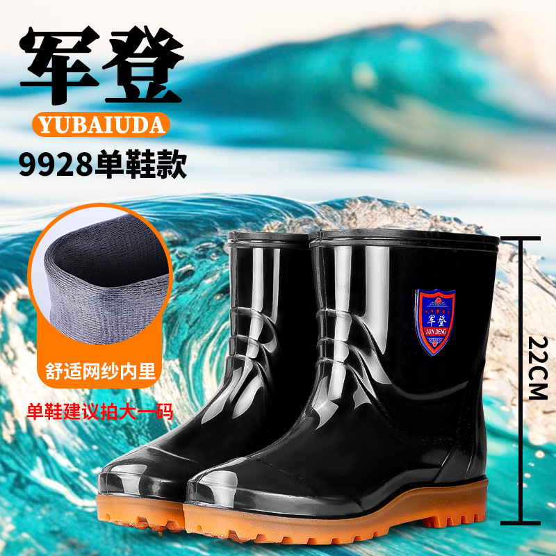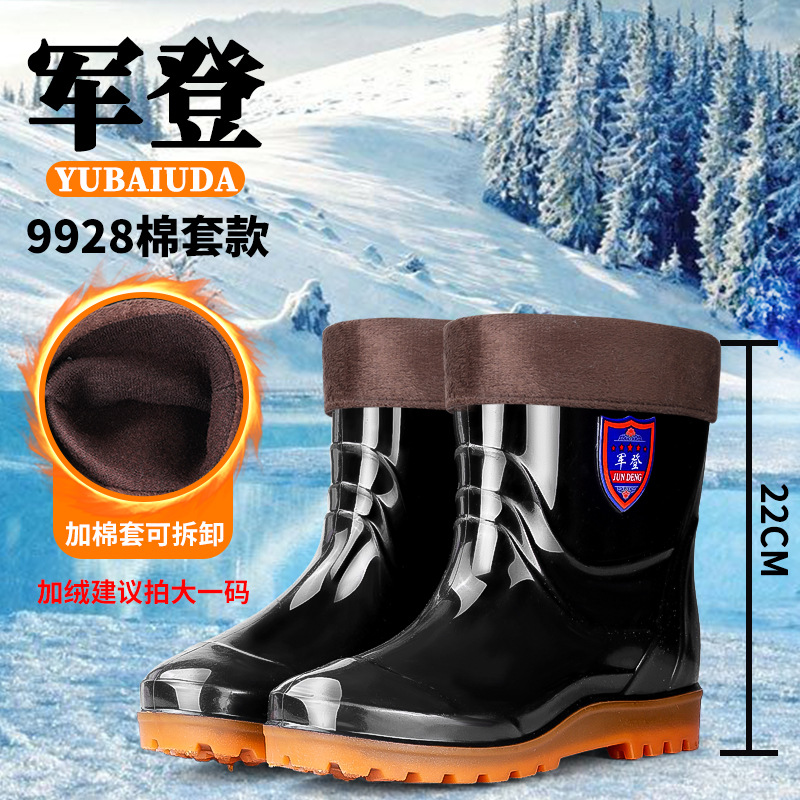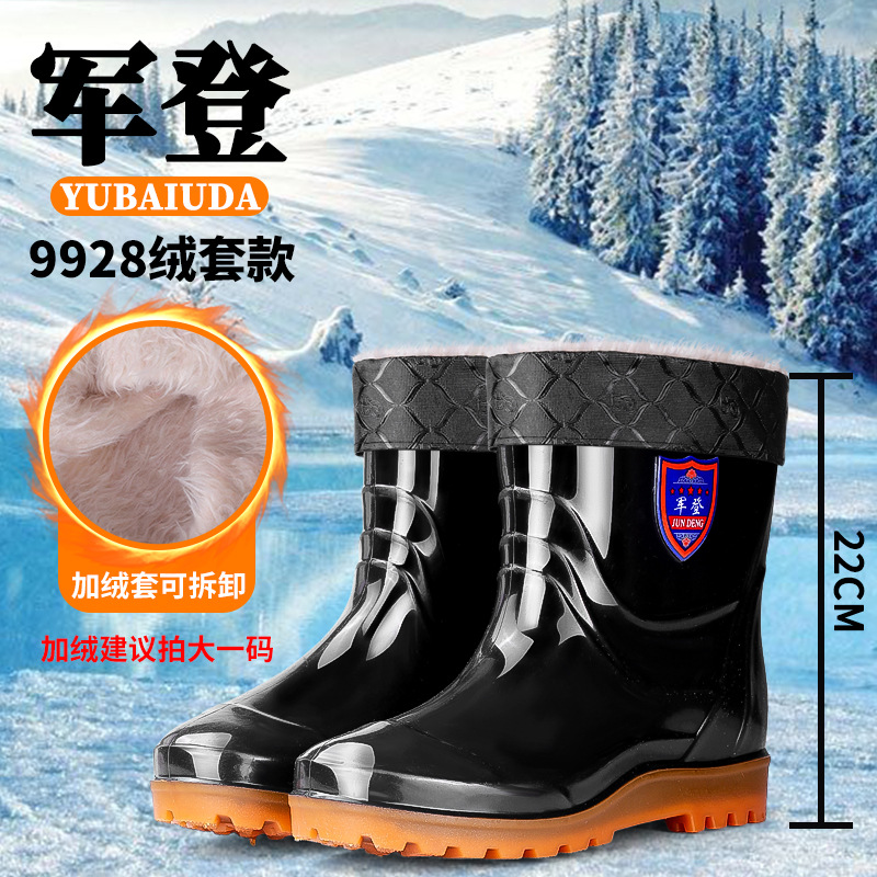 Jundeng 쇠고기 신발 남성용 두꺼운 밑창 높은 물 신발 기모 고무 신발 장화 짧은 워터 부츠 주방 미끄럼 방지 오버 슈즈