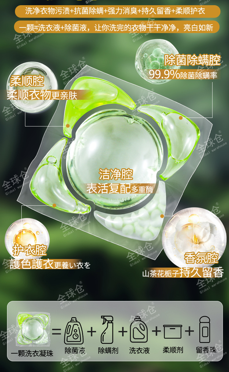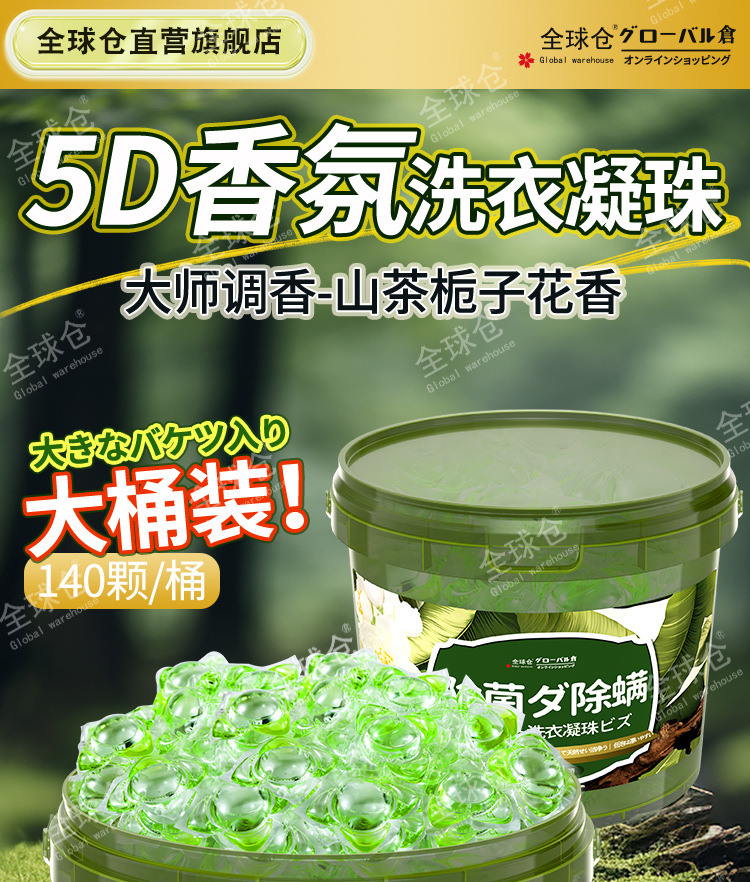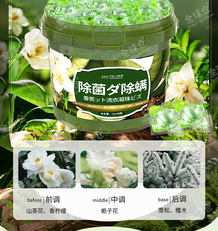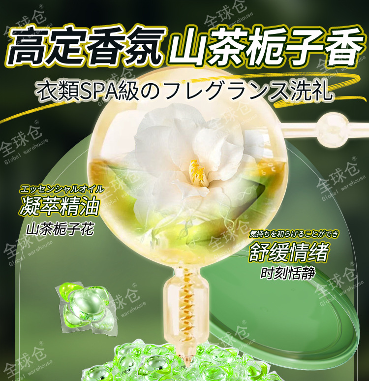 5D 동백 세탁 응축 구슬 향기로운 구슬 3 대 1 세탁 지속 향기 먼지 및 진드기 제거 가정용 액체 공