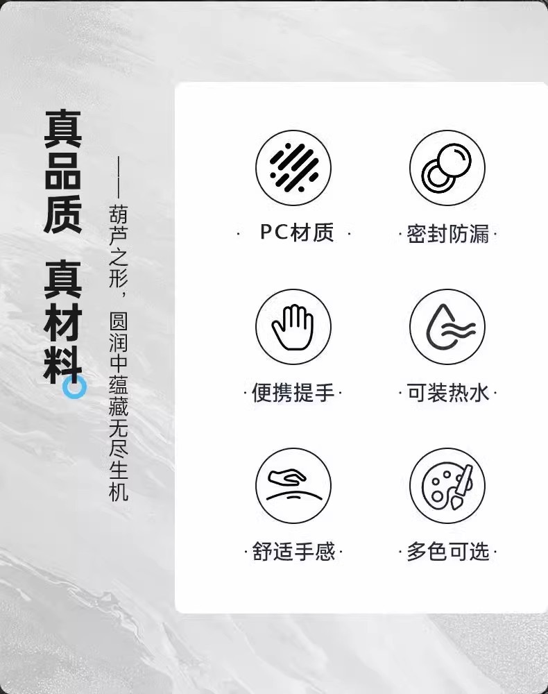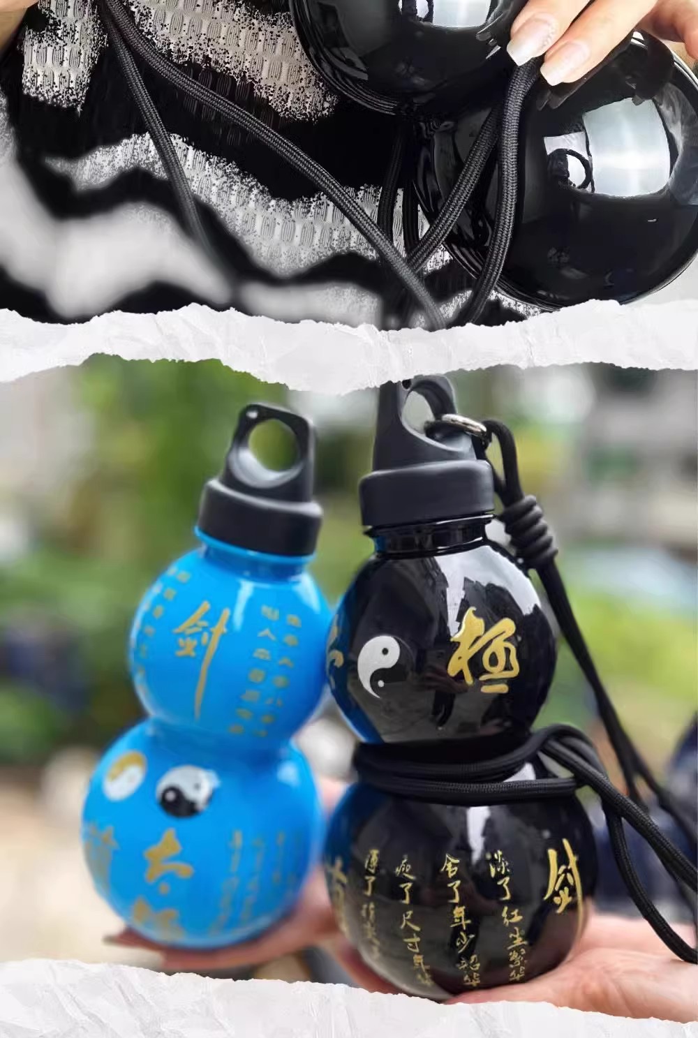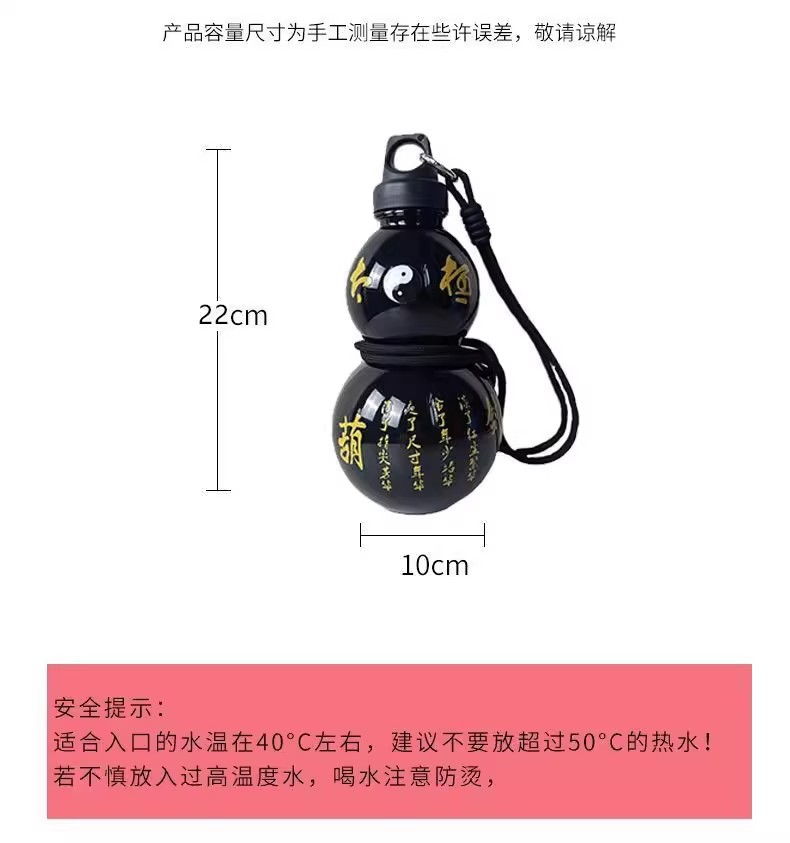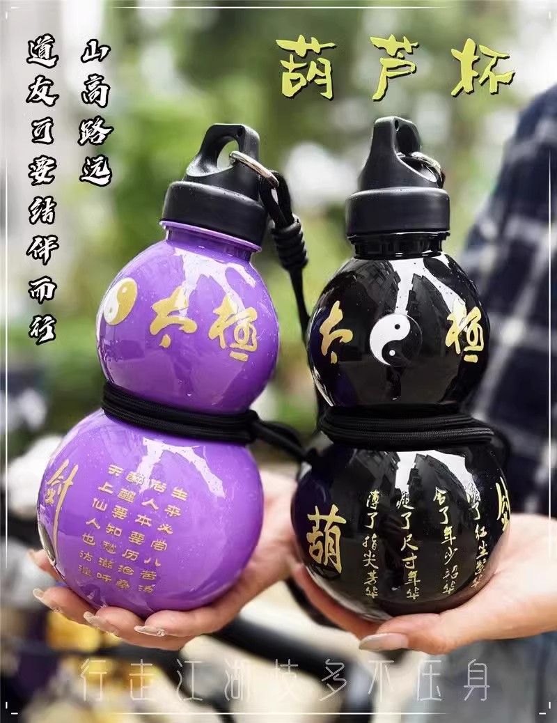 조롱박 주전자 오리엔탈 블랙 우콩 플라스틱 물 컵 학생 남녀 높은 색상 값 높은 온도 저항하는 휴대용 스포츠 워터 컵