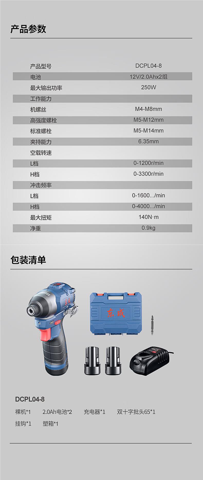 동청 브러시리스 충격 스크루 드라이버 12V 대형 토크 전기 스크루 드라이버 핸드 전기 드릴 동청 전기 배치 DCPL04-8E