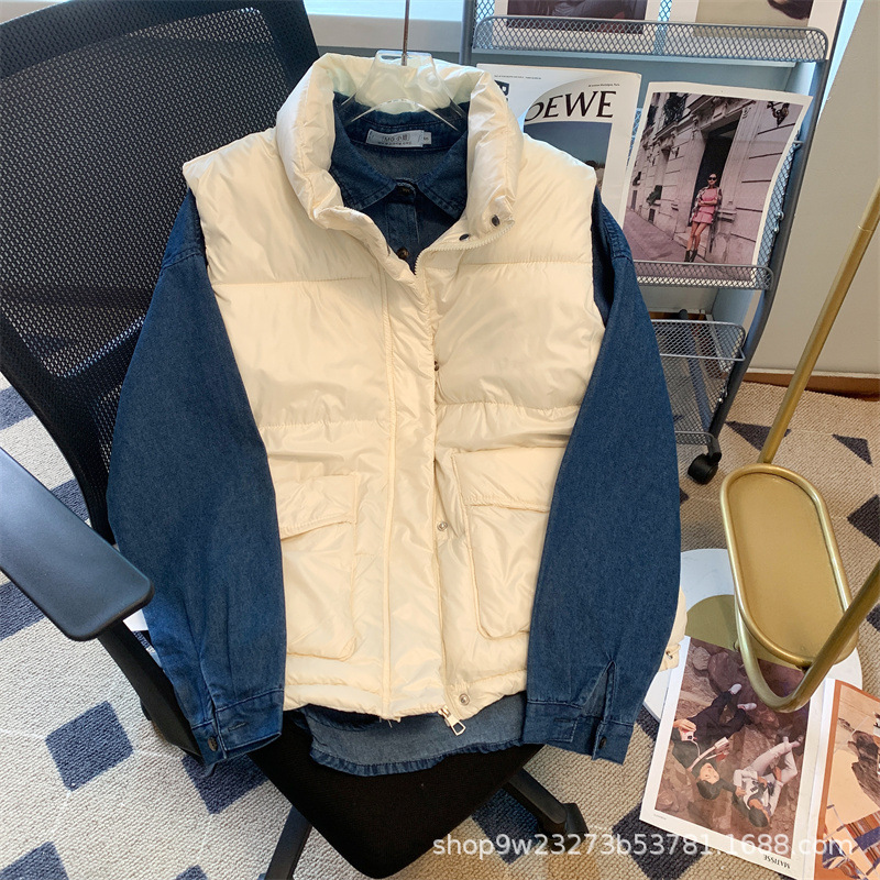 중다 아동면 패딩 의류 드로우 스트링 조끼 대형 포켓 가을과 겨울 칼라 남성과 여성의 어린이 조끼 두꺼운 조끼 조끼 유행 브랜드 자켓스토어 가기