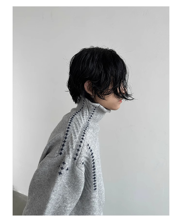 하이 엔드 동시 컬러 장식 높은 목 긴 소매 스웨터 남성 가을 및 겨울 새로운 틈새 디자인 스웨터베이스 셔츠 탑스토어 가기