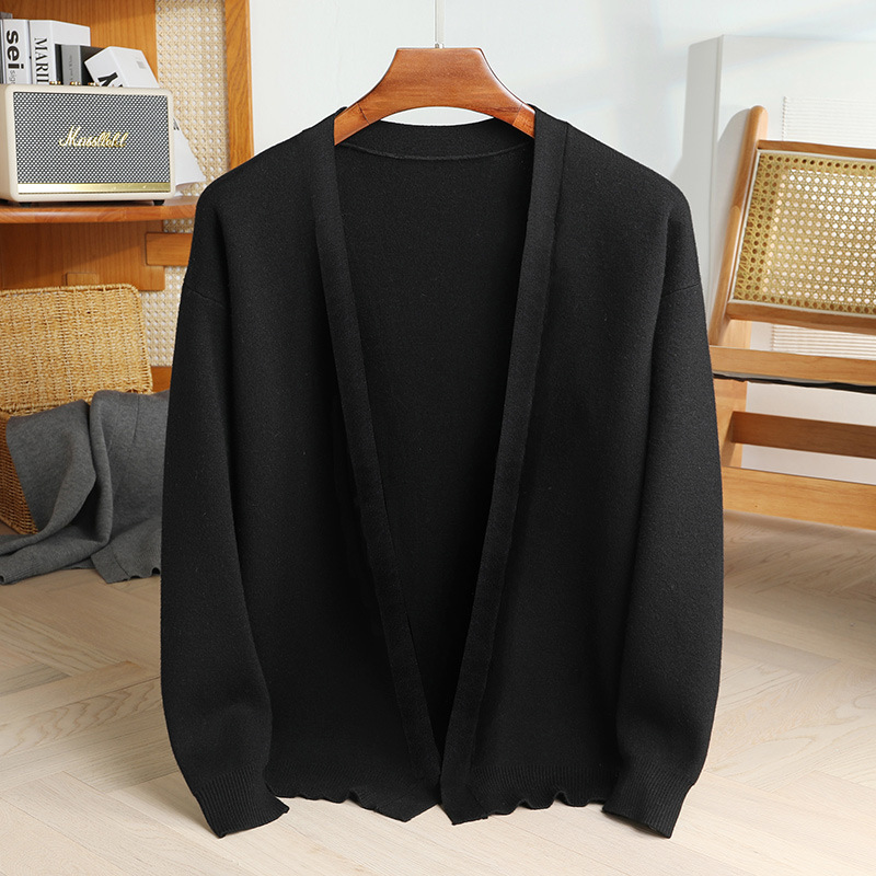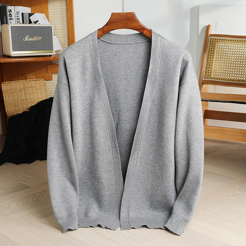 봄 새로운 느슨한 워스트 카디건 고급 긴팔 스웨터 남성용 간단한 단색 패션 스웨터