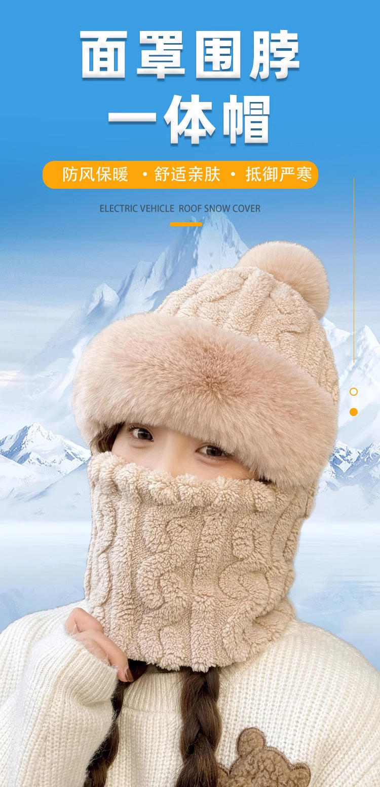 겨울 자카드 방풍 라이딩 넥워머 마스크 일체형 귀덮개 보온 터번 여성용 팬더 털모자