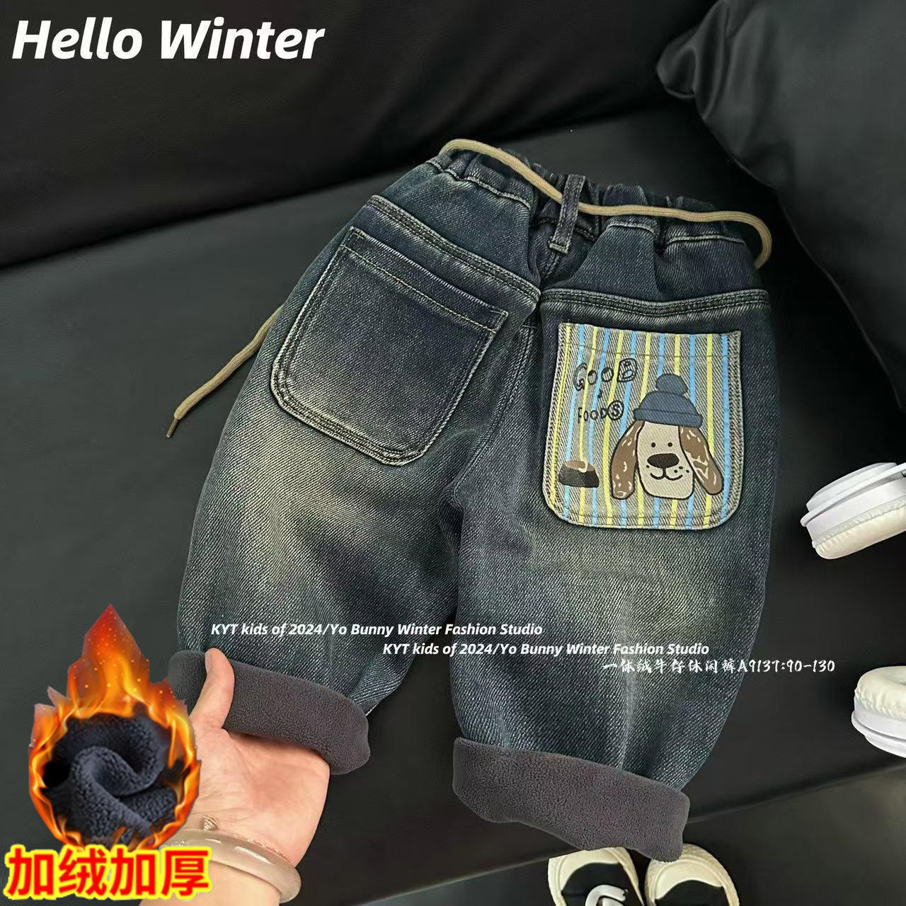 소년의 세련된 벨벳 겉옷 가을, 겨울 청바지 2025 새로운 스타일 아기 소녀의 두꺼운 캐주얼 겨울 의류 아동 바지스토어 가기