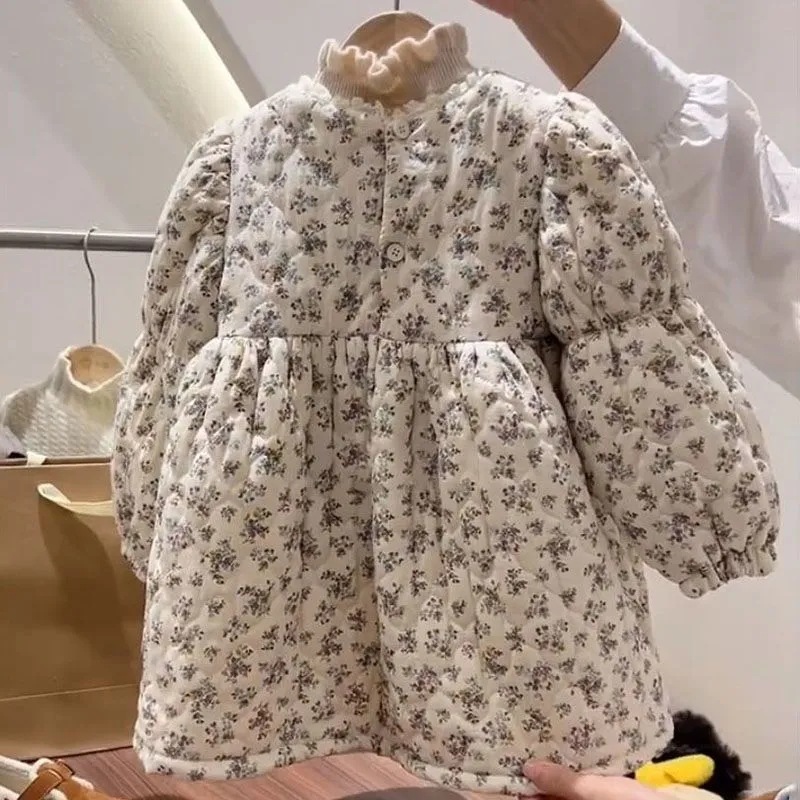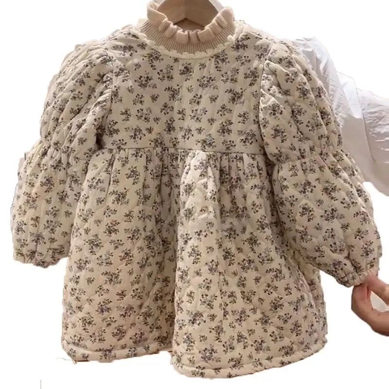 한국 아동복 소녀 퀼트 2024 원피스 가을과 겨울 달콤한 꽃 두꺼운 아기 공주 원피스 어린이 치마스토어 가기