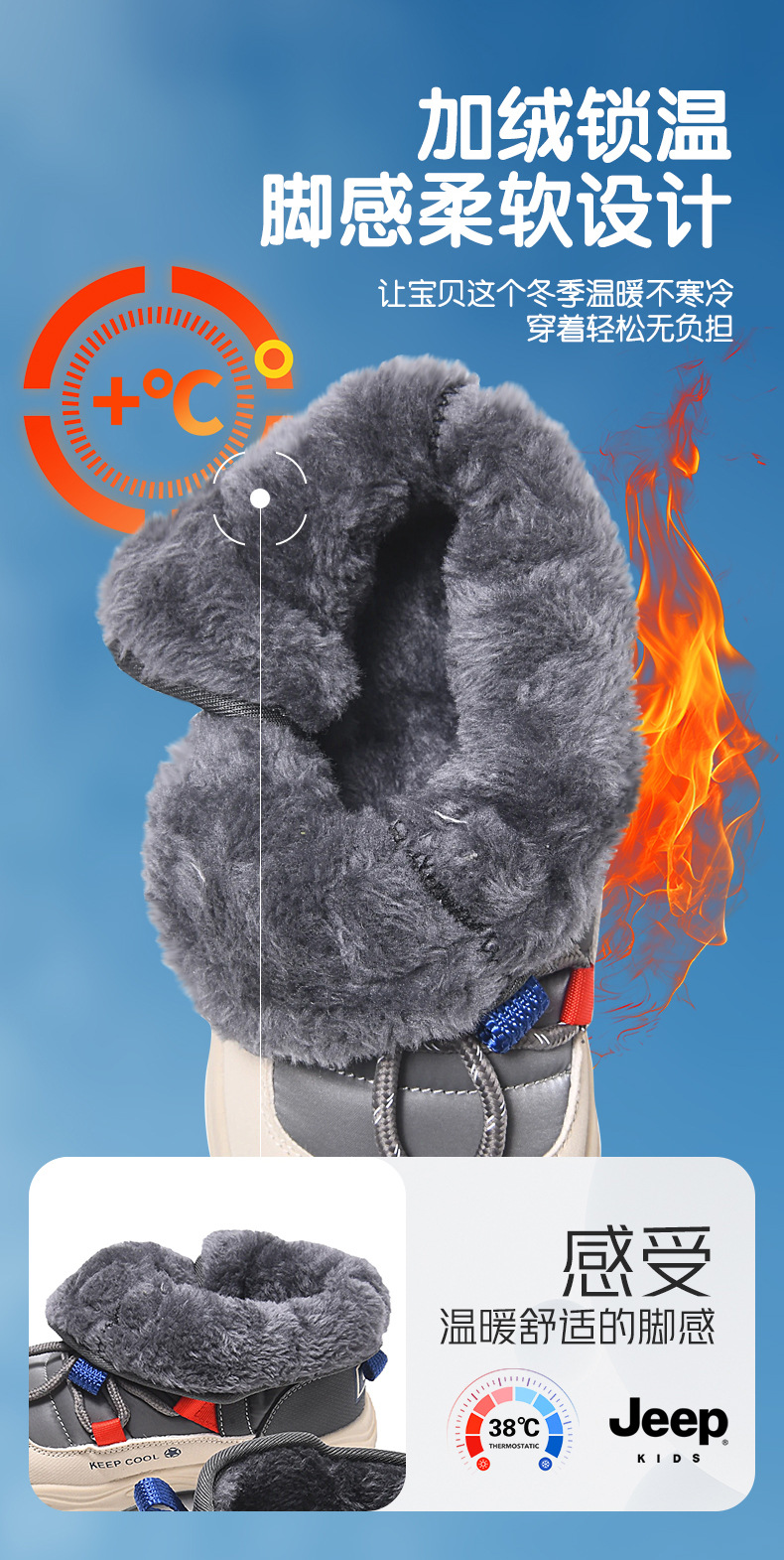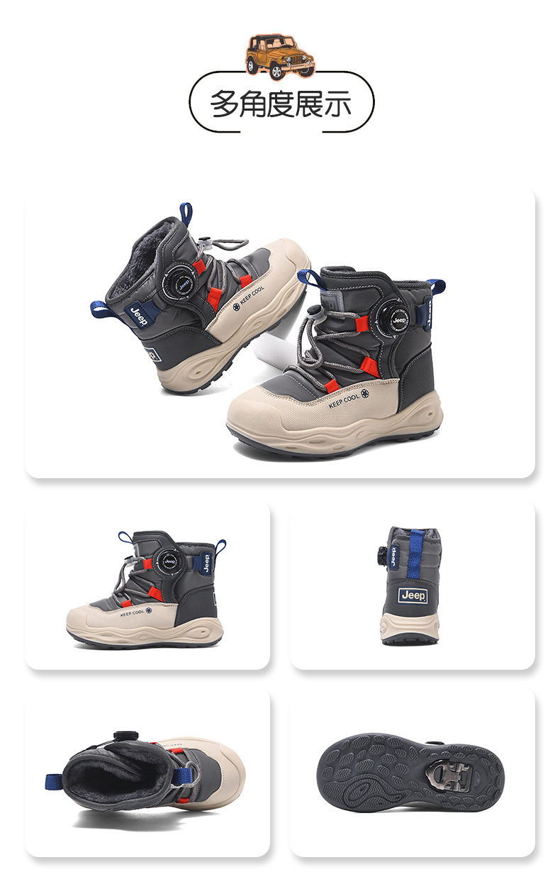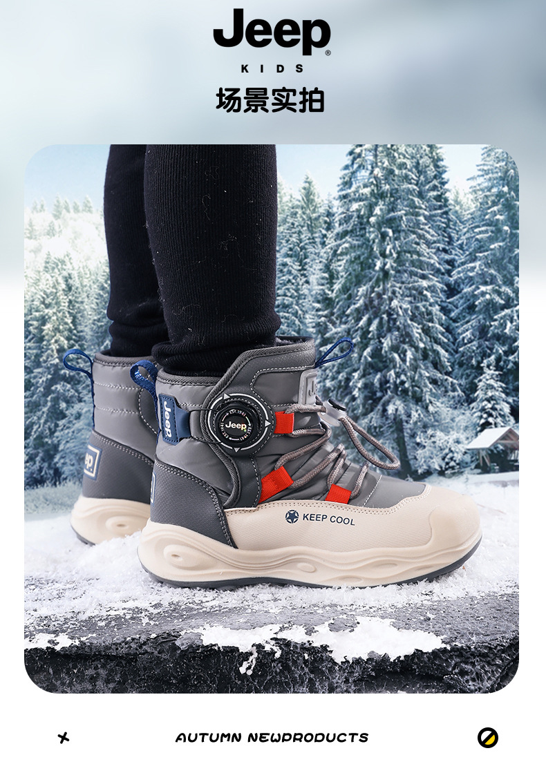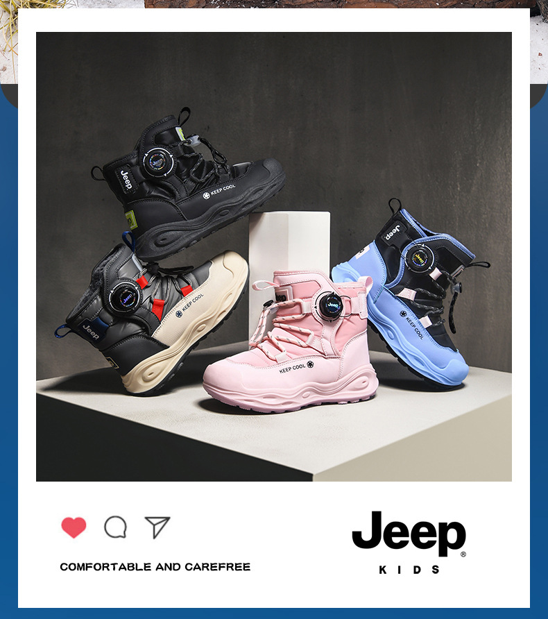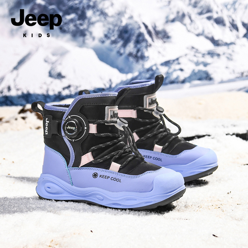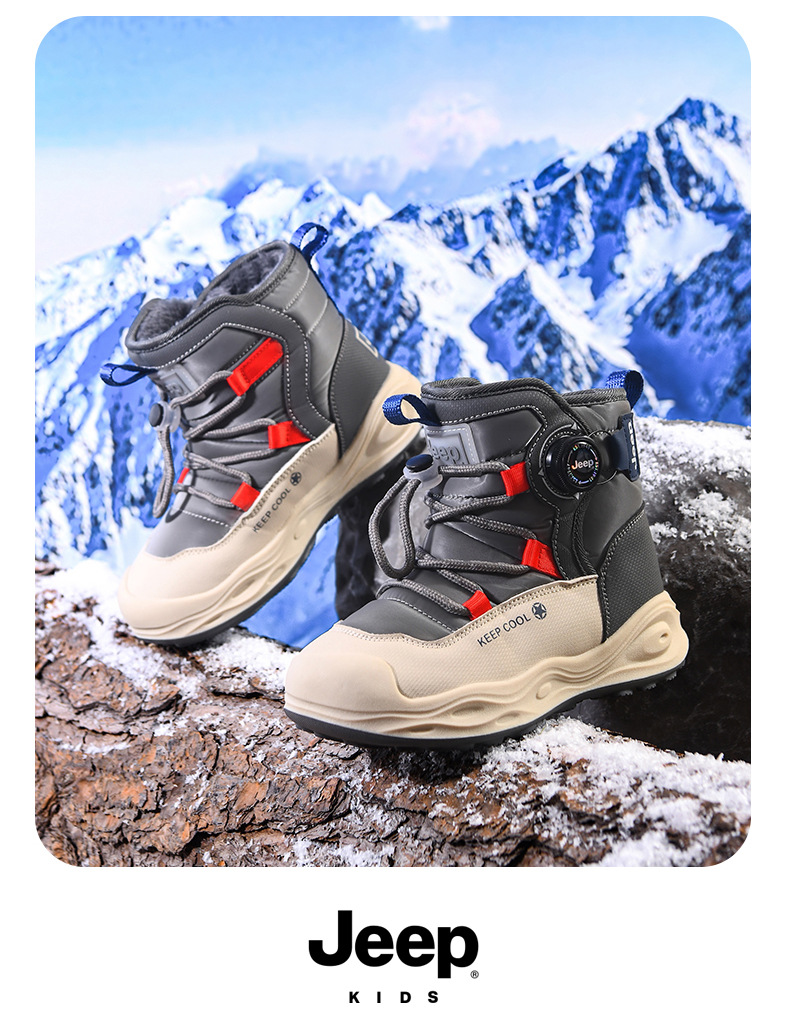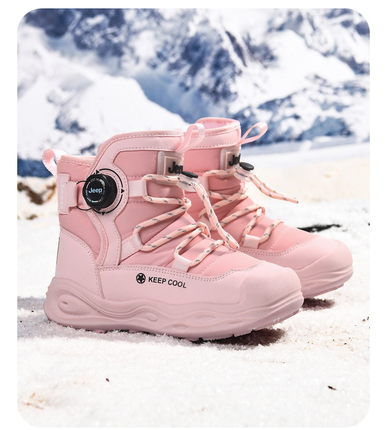 지프 어린이 신발 2024 겨울 새로운 회전 버튼 야외 따뜻한 어린이 스노우 부츠 방수 미끄럼 방지 소년 부츠