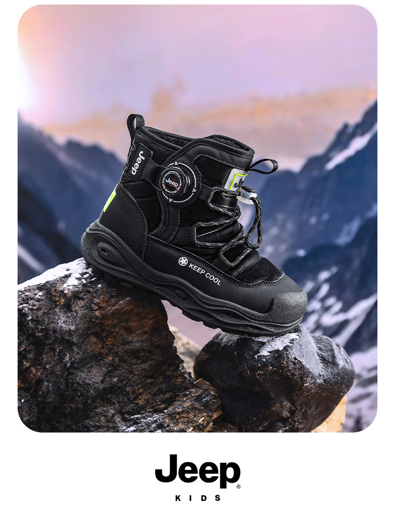 지프 어린이 신발 2024 겨울 새로운 회전 버튼 야외 따뜻한 어린이 스노우 부츠 방수 미끄럼 방지 소년 부츠스토어 가기