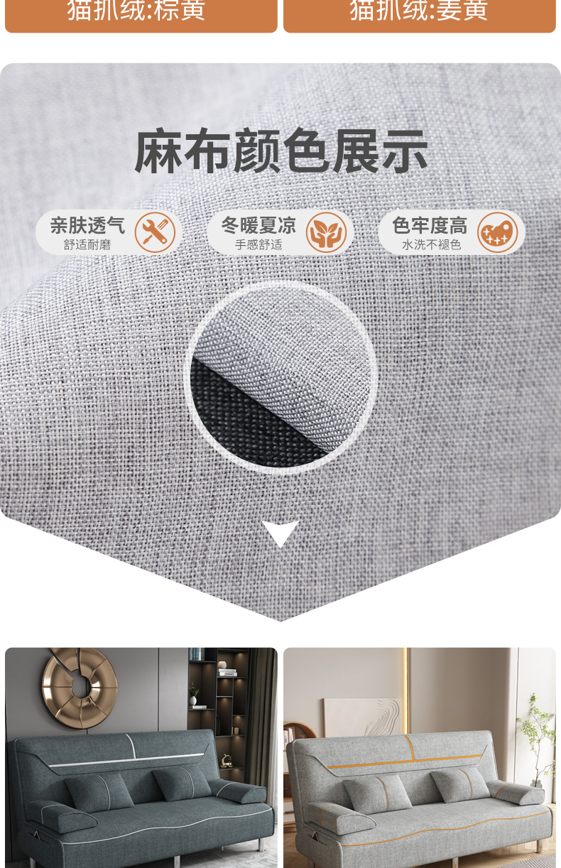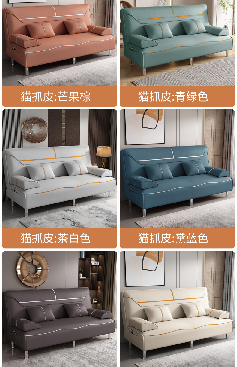 접이식 소파 침대 다기능 소형 아파트 이중 사용 소파 싱글 및 더블 고양이 발톱 가죽 거실 침실 기술 천