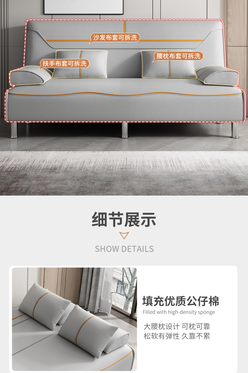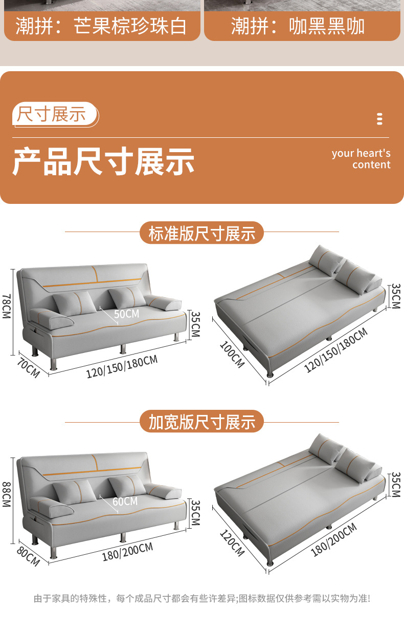 접이식 소파 침대 다기능 소형 아파트 이중 사용 소파 싱글 및 더블 고양이 발톱 가죽 거실 침실 기술 천스토어 가기