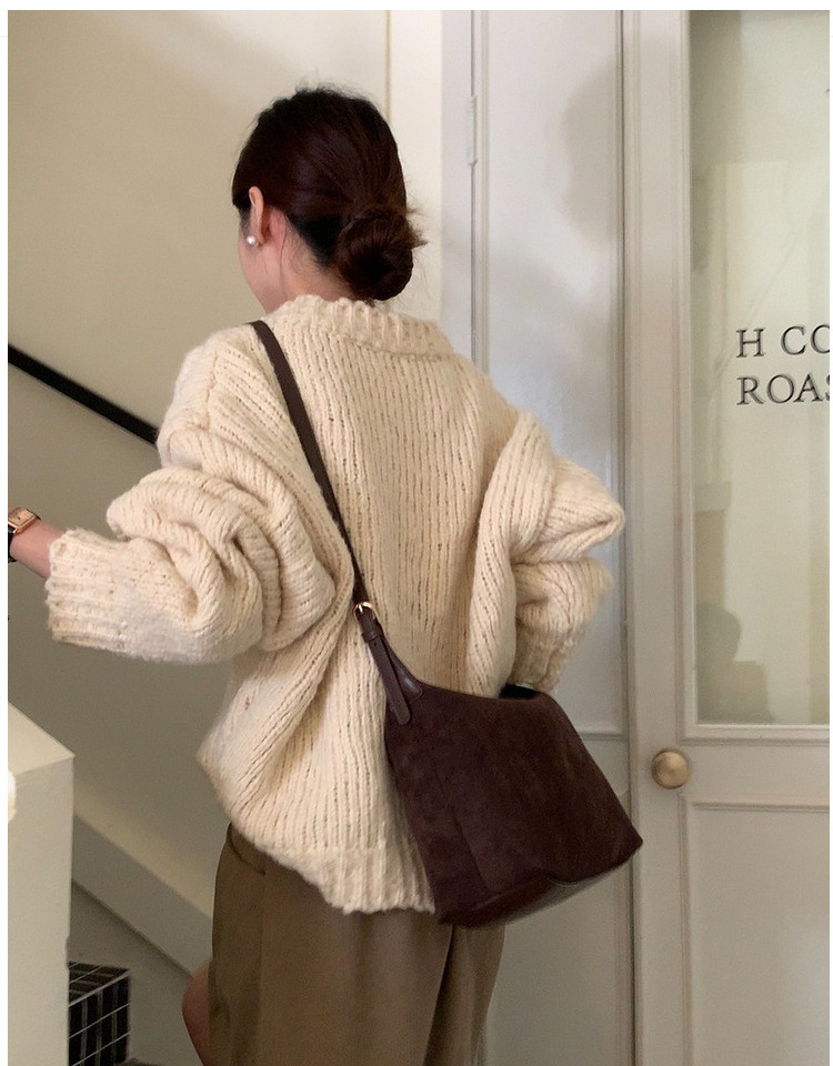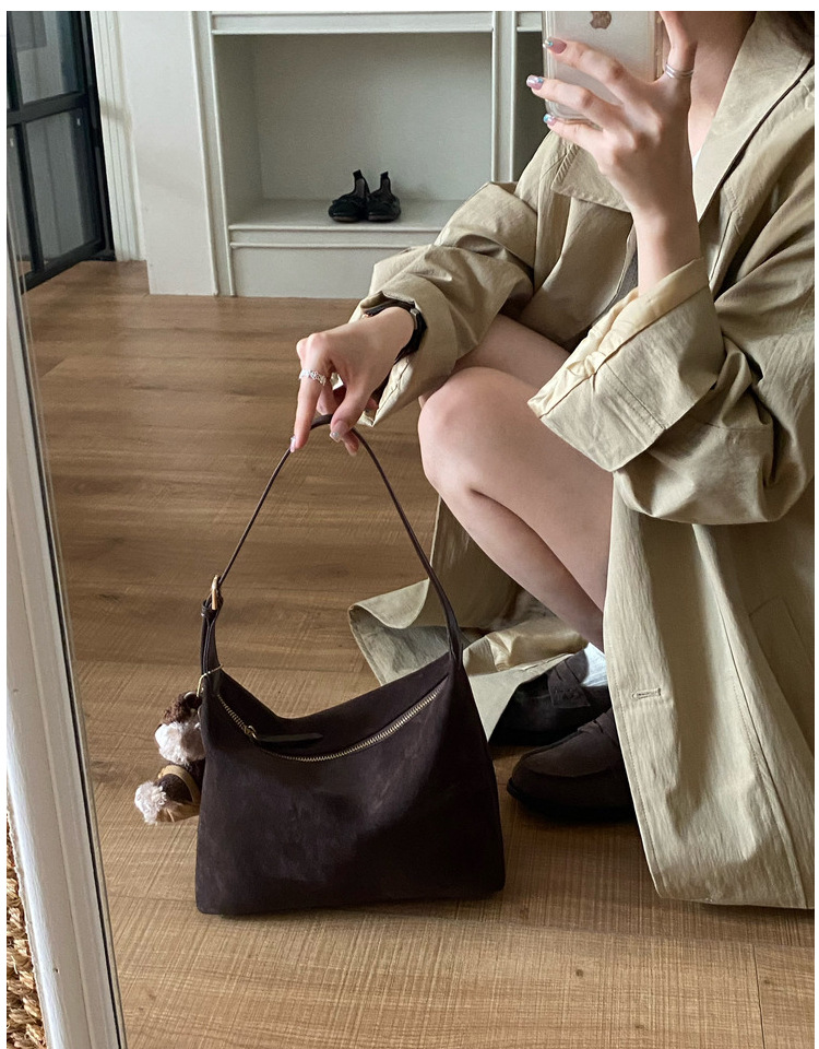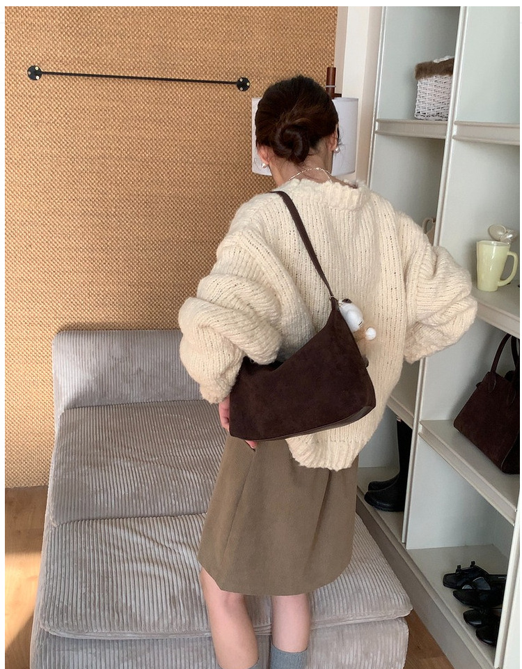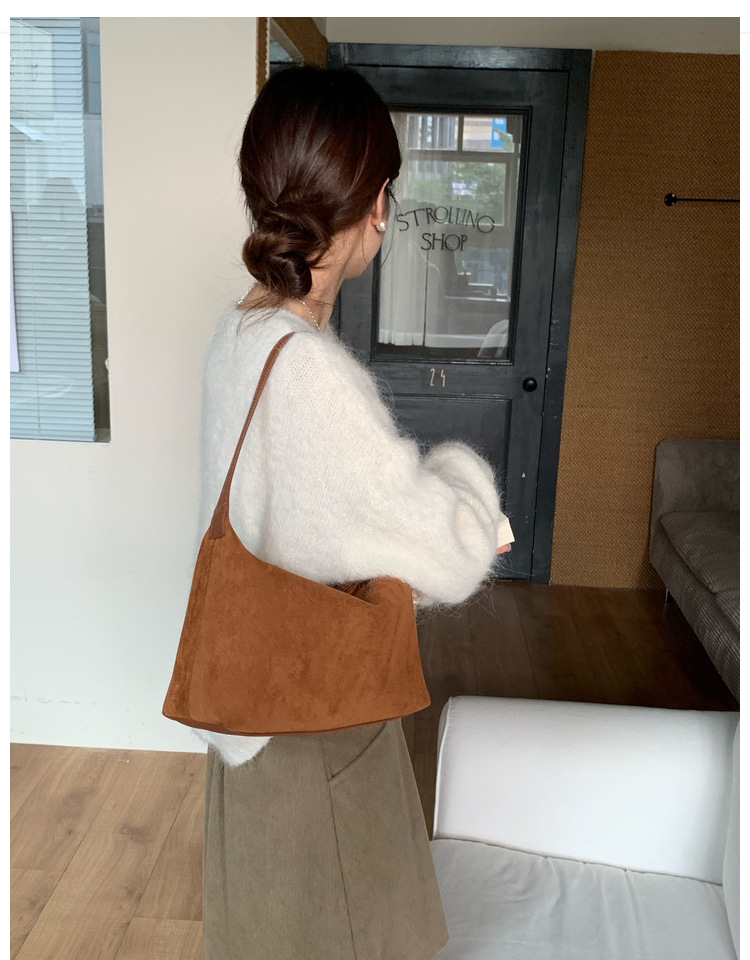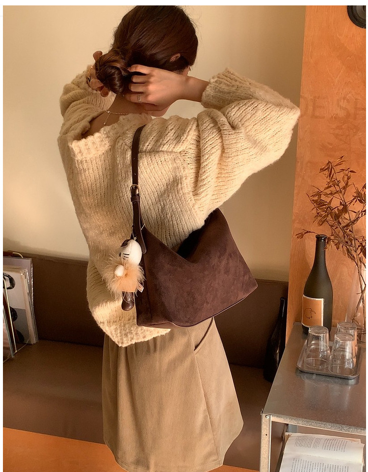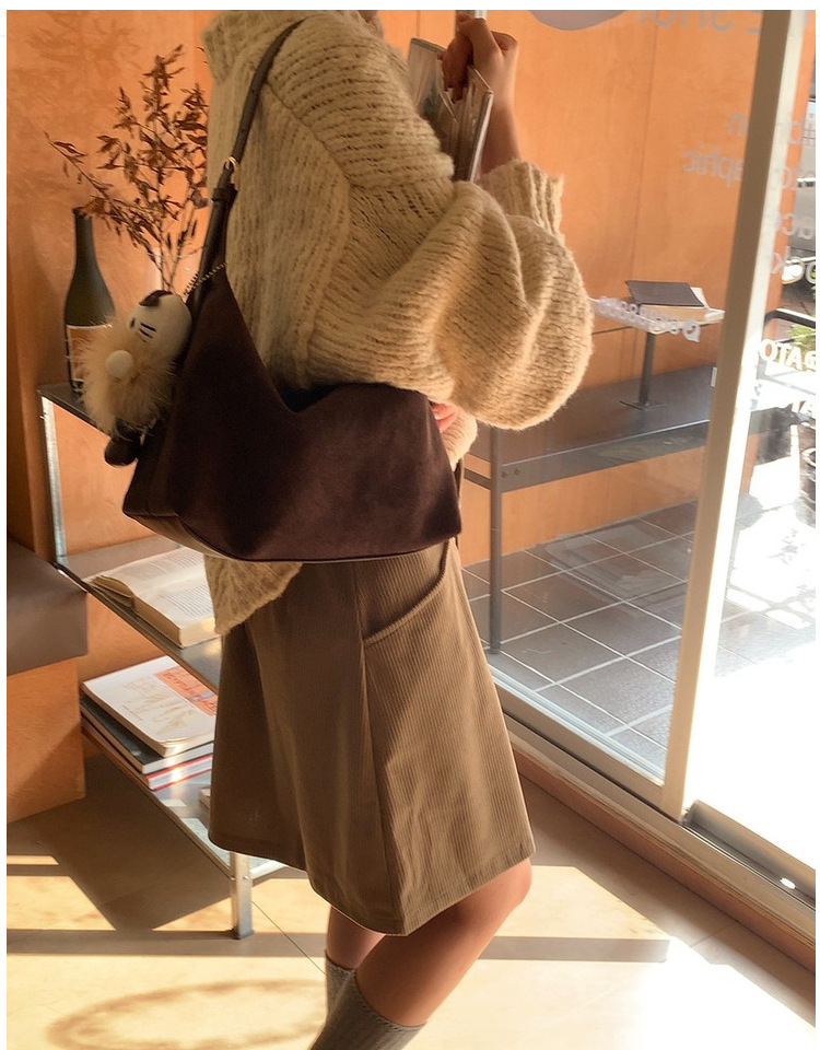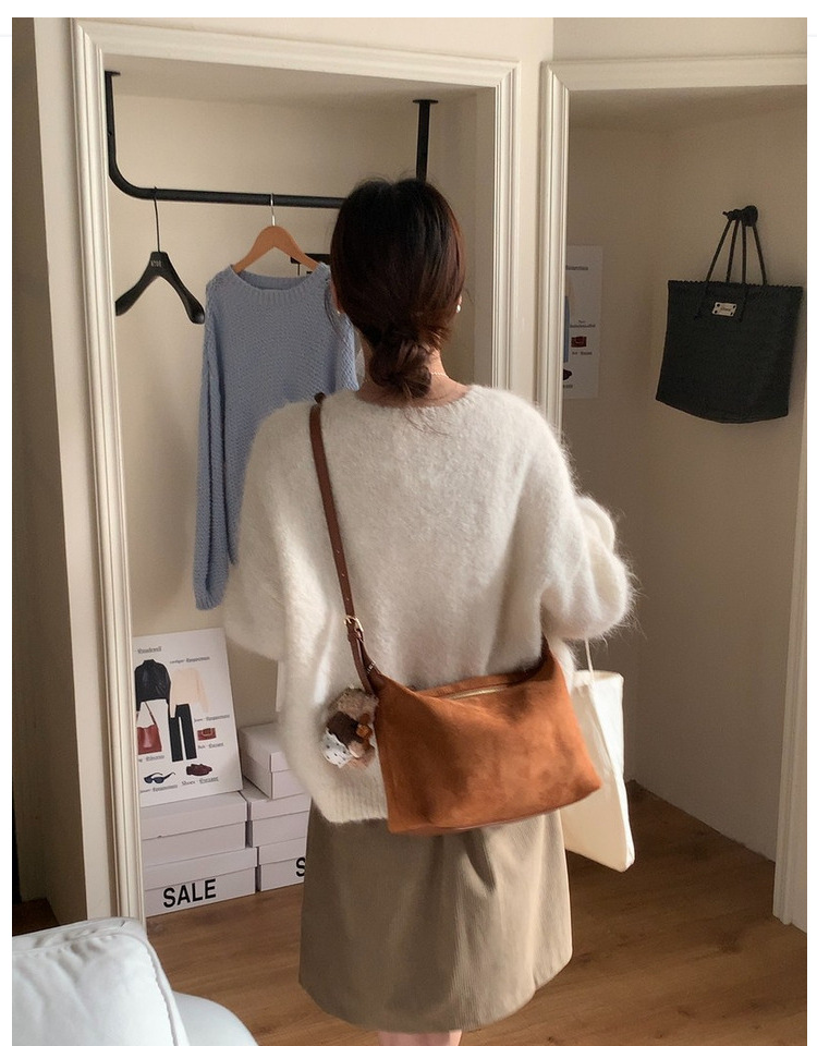 가을과 겨울 한국 스타일 레트로 스웨이드 간단한 속옷 만두 가방 간단한 통근 Deerskin 양털 어깨 손 크로스 백