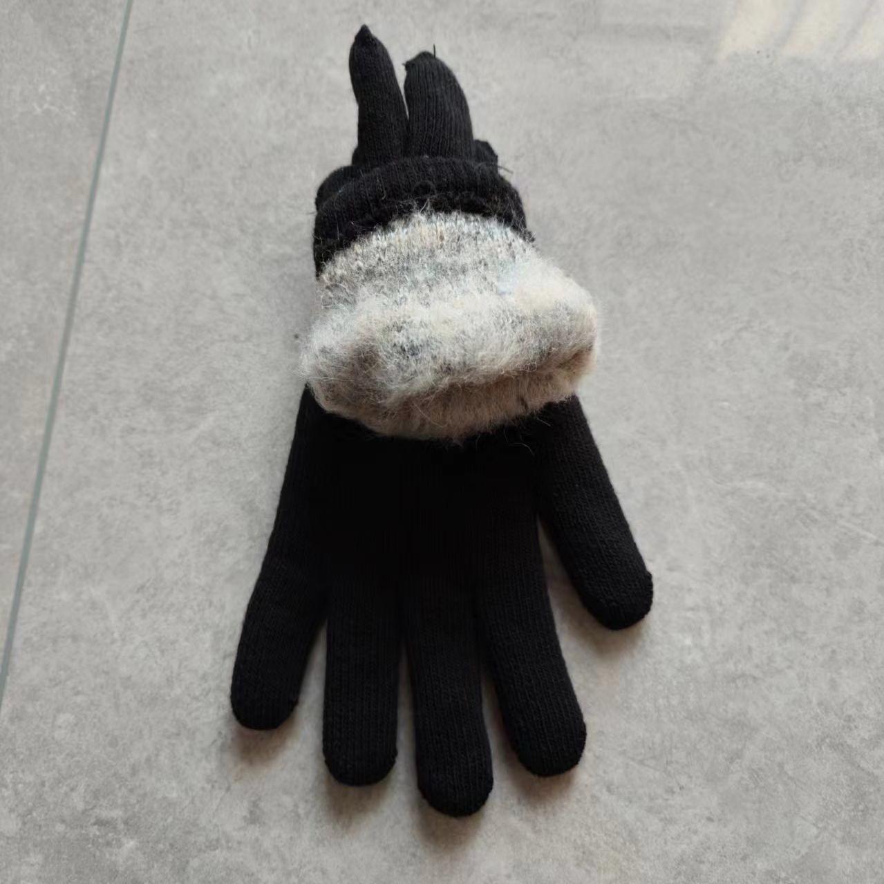 남자와 여자의 겨울 검은 야외 승마 두꺼운 기모 유행 더블 레이어 따뜻한 자체 난방 냉난방 니트 장갑