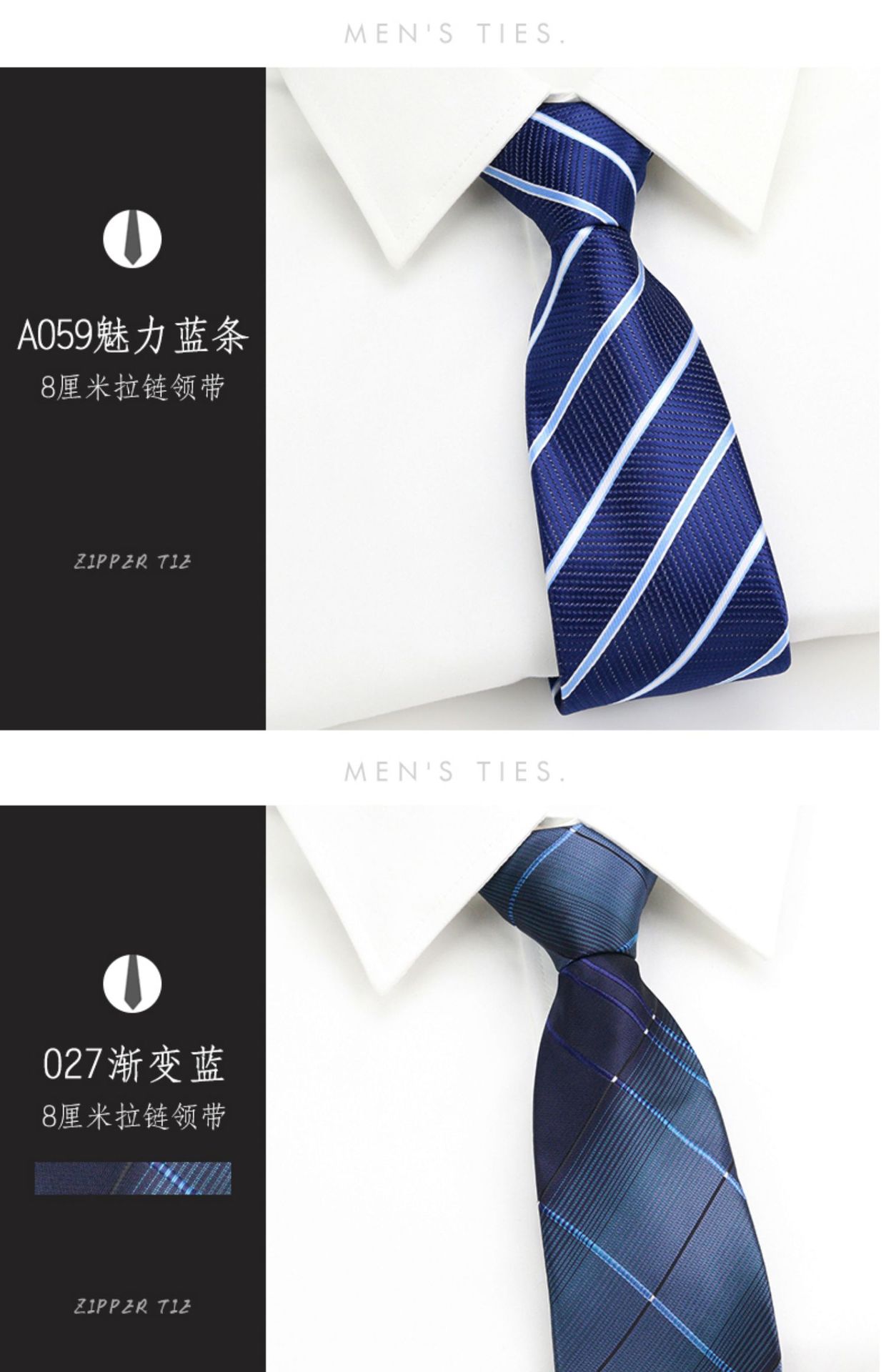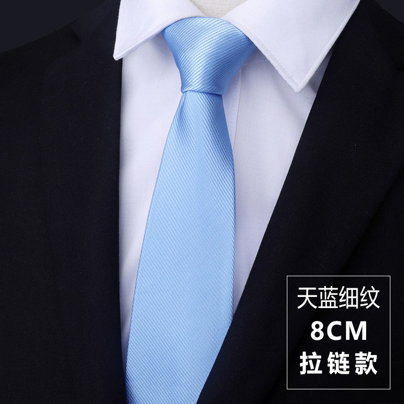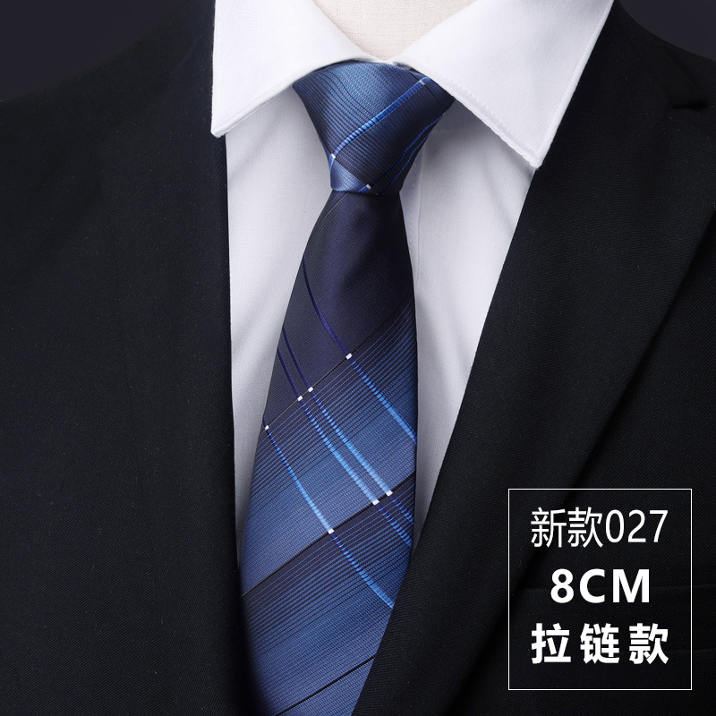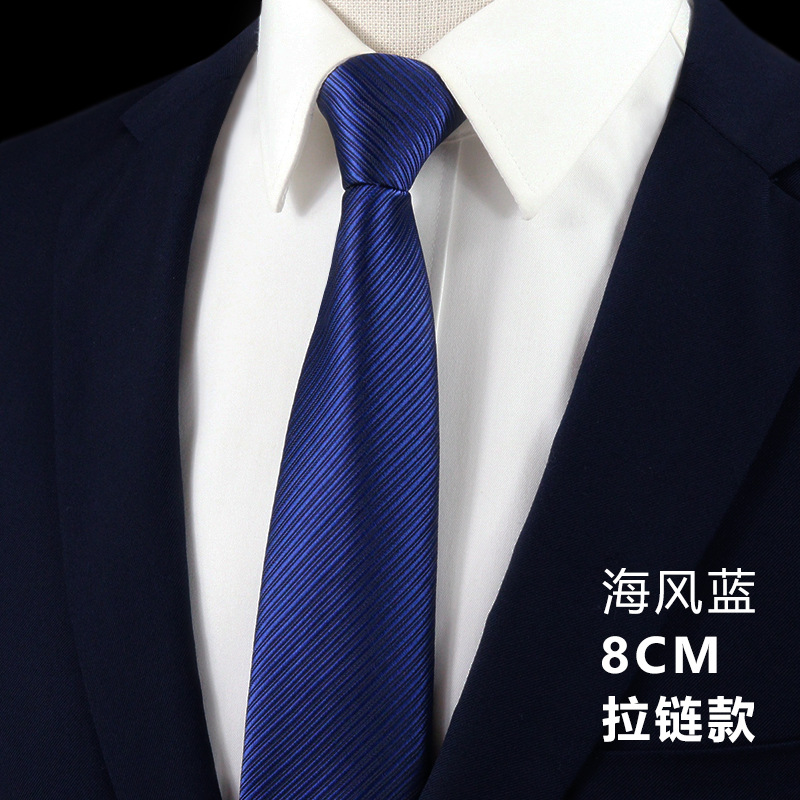 • 8cm 우아한 블루 스트라이프 핫 판매 지퍼 모델 [프리 타이 클립]