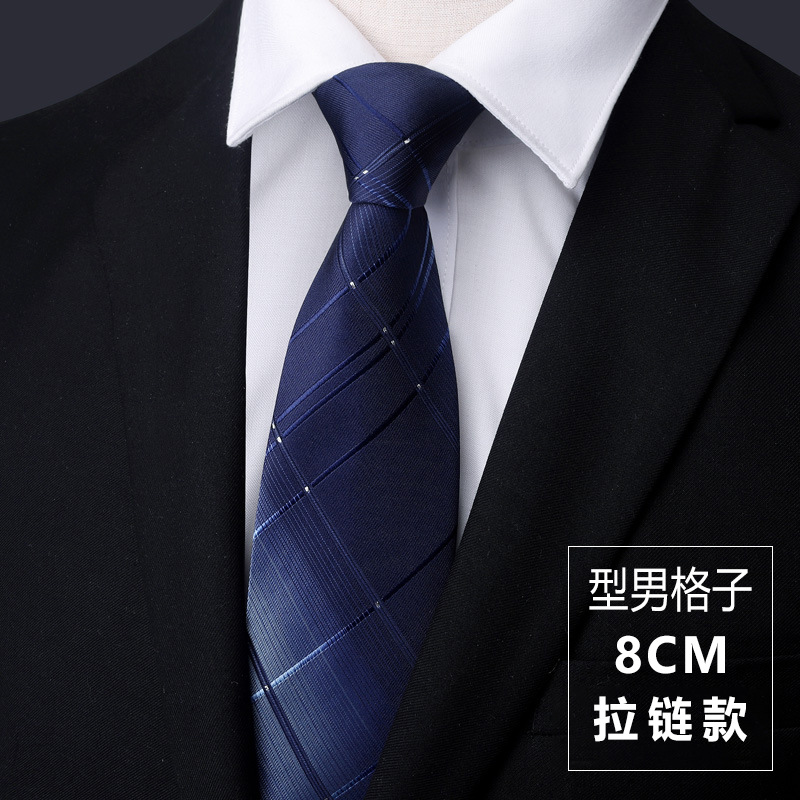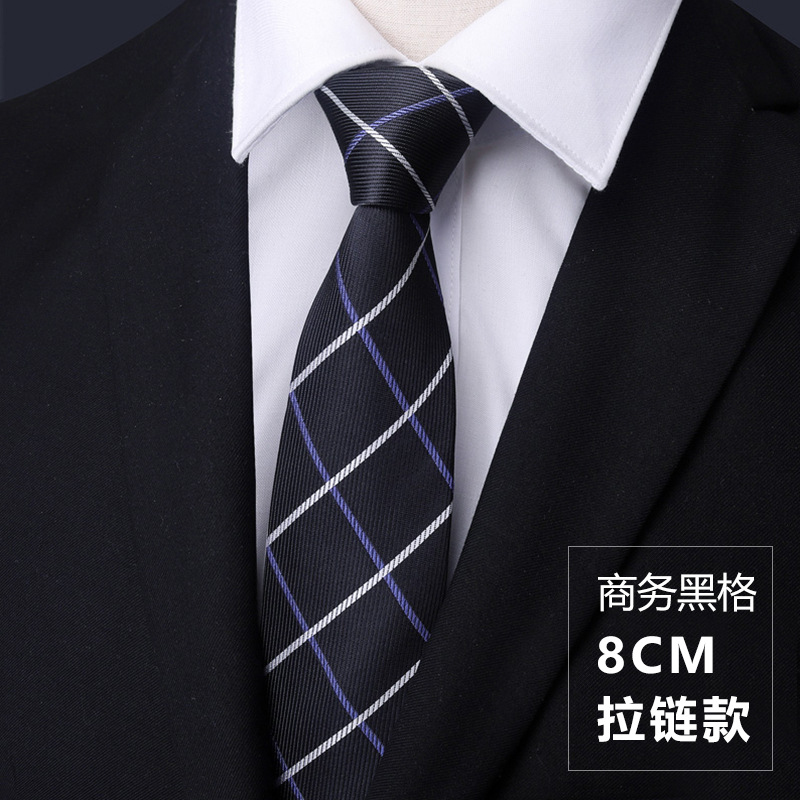 • 8cm 비즈니스 블랙 그리드 핫 판매 지퍼 스타일 [프리 타이 클립]
