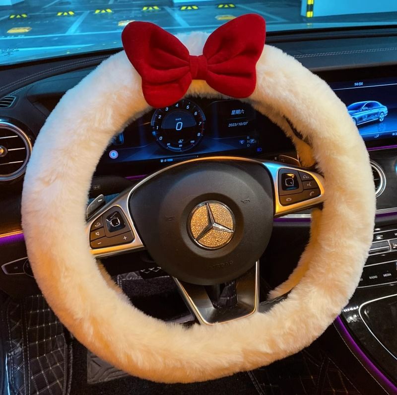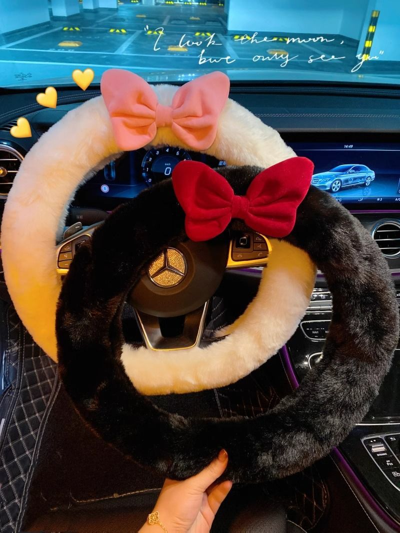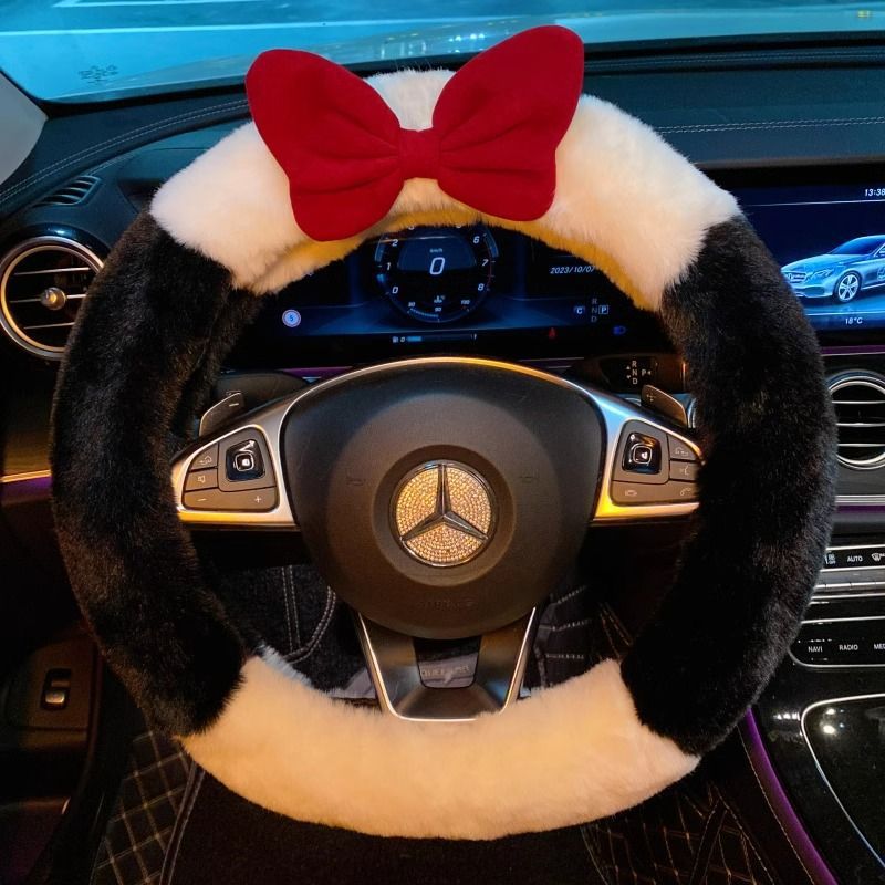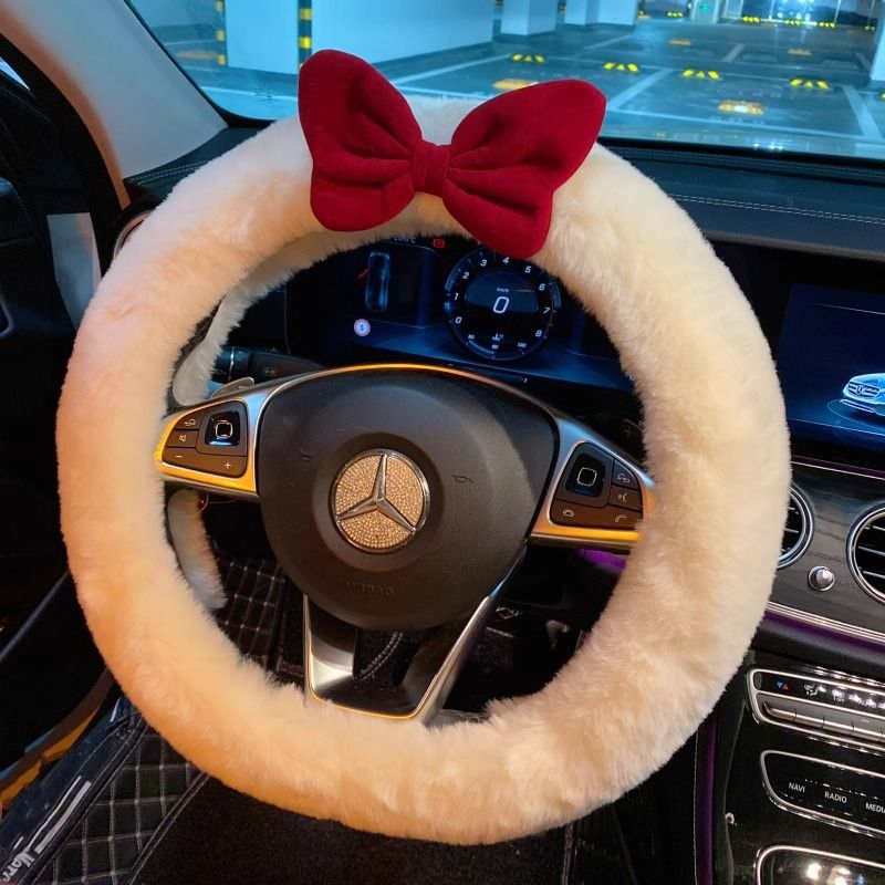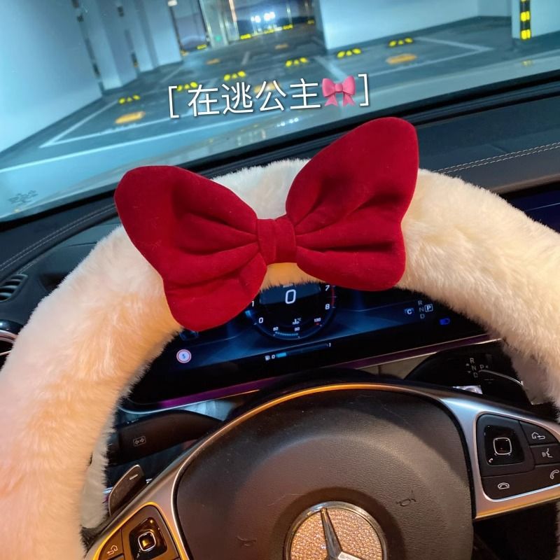 탈출 공주 귀여운 스티어링 휠 커버 여성의 활 겨울 따뜻한 봉제 장식 자동차 핸들 커버 사계절스토어 가기