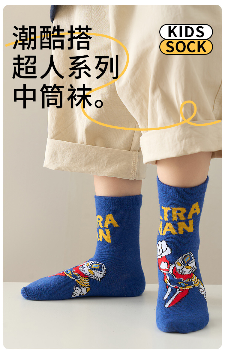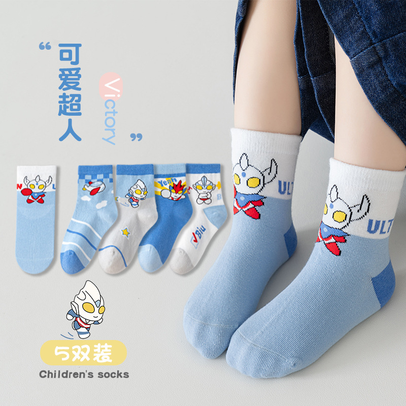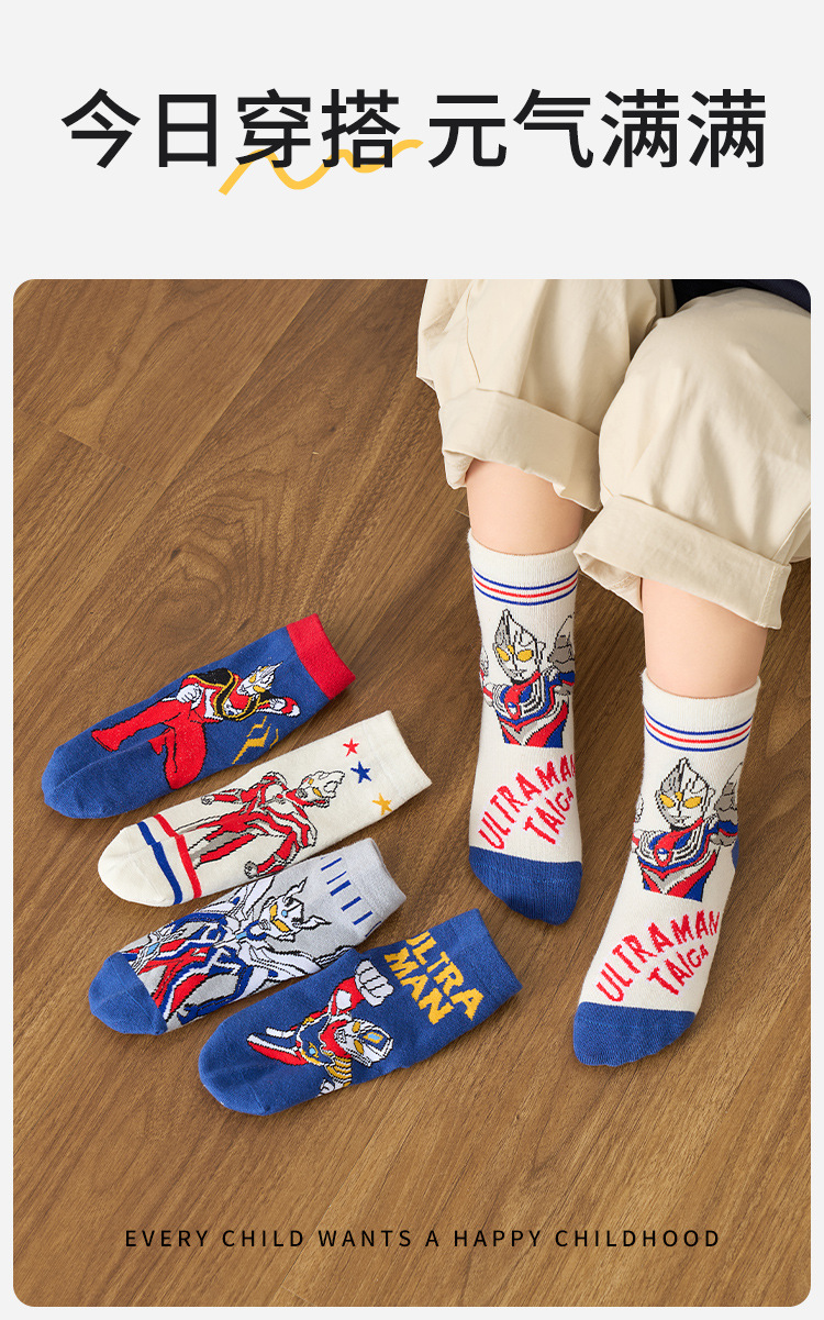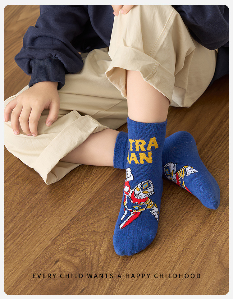 어린이 양말 가을 겨울 새 만화 울트라 맨 전사 어린이 미드 튜브 양말 대형 어린이 면 양말 애니메이션 패션 양말