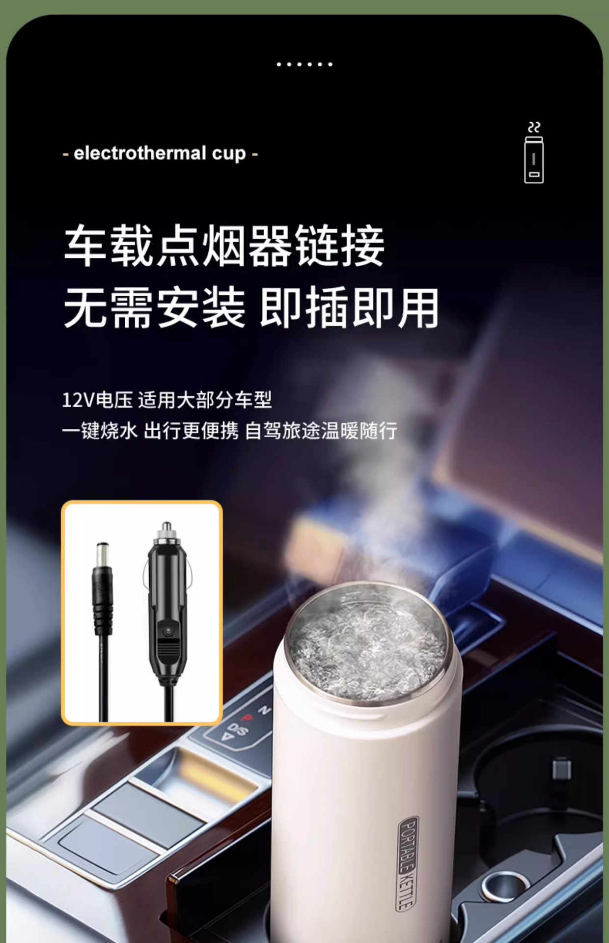 자동차 휴대용 주전자 12v 여행 끓는 물 컵 전기 난방 컵 미니 난방 스마트 자동차 끓는 물스토어 가기