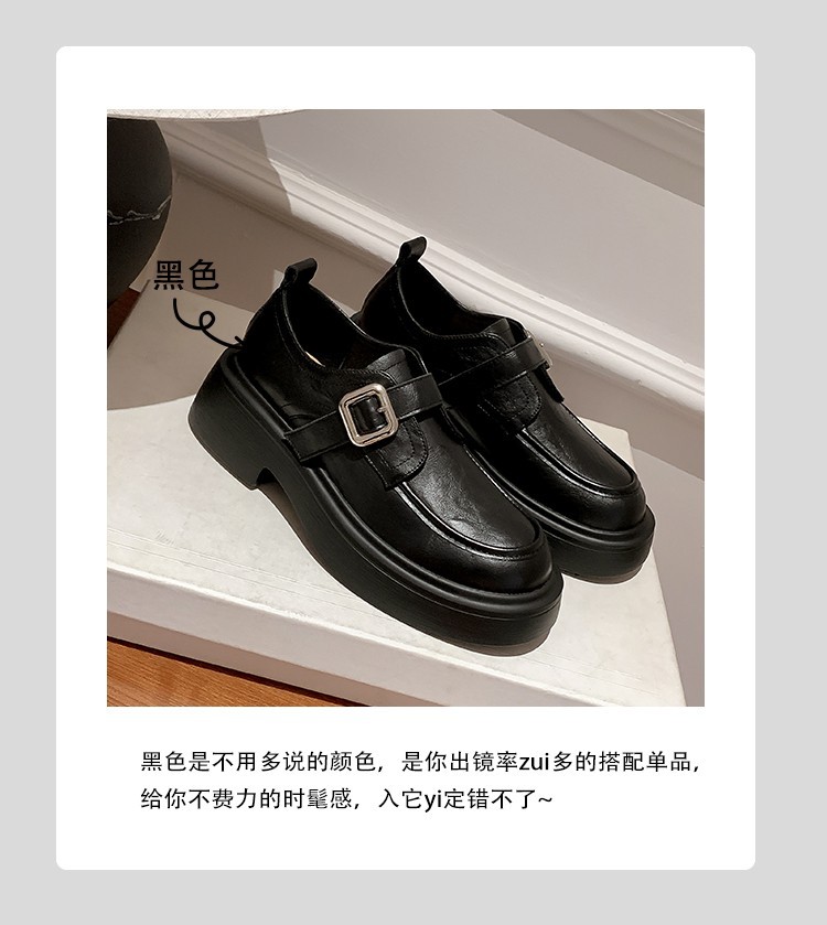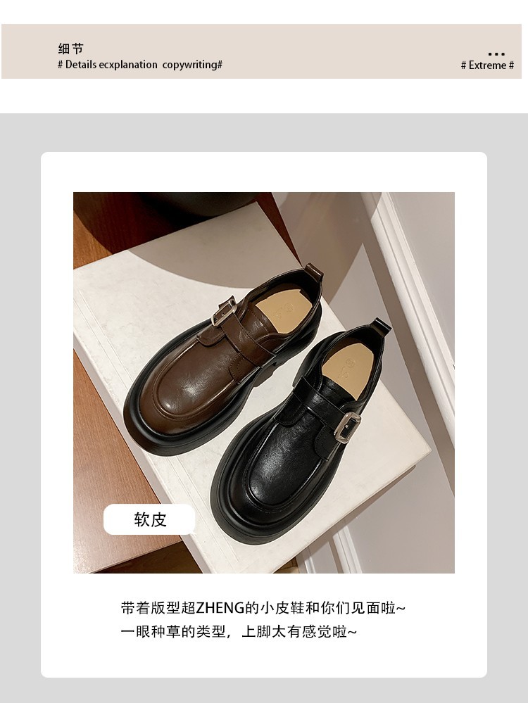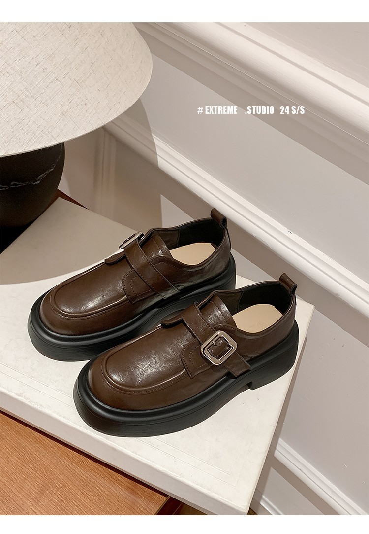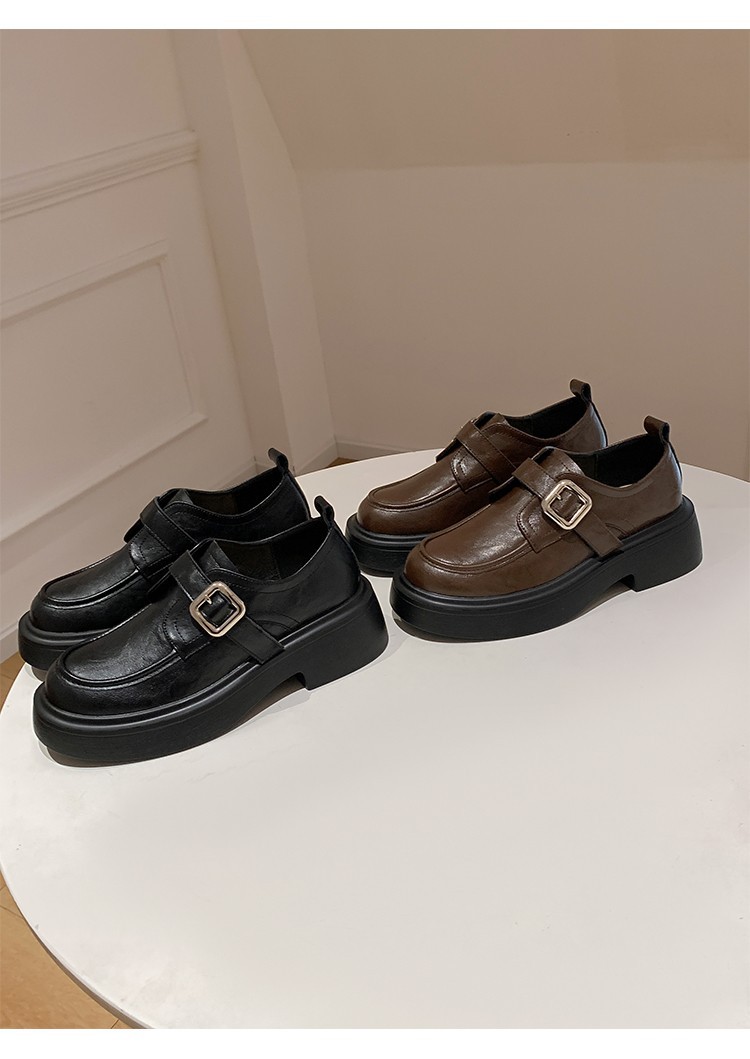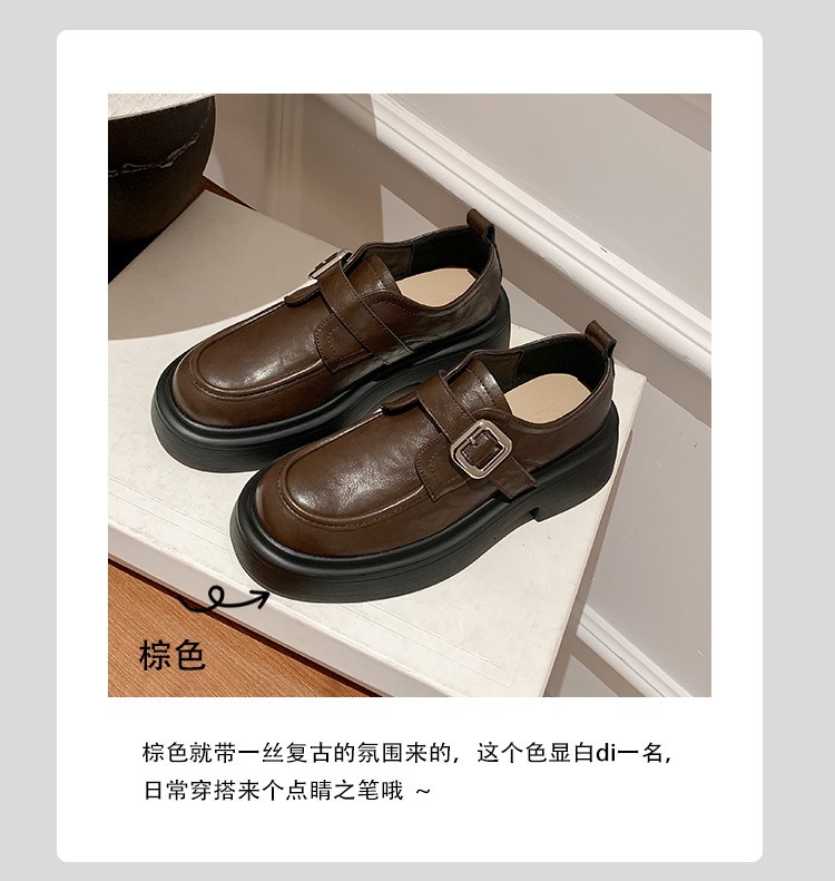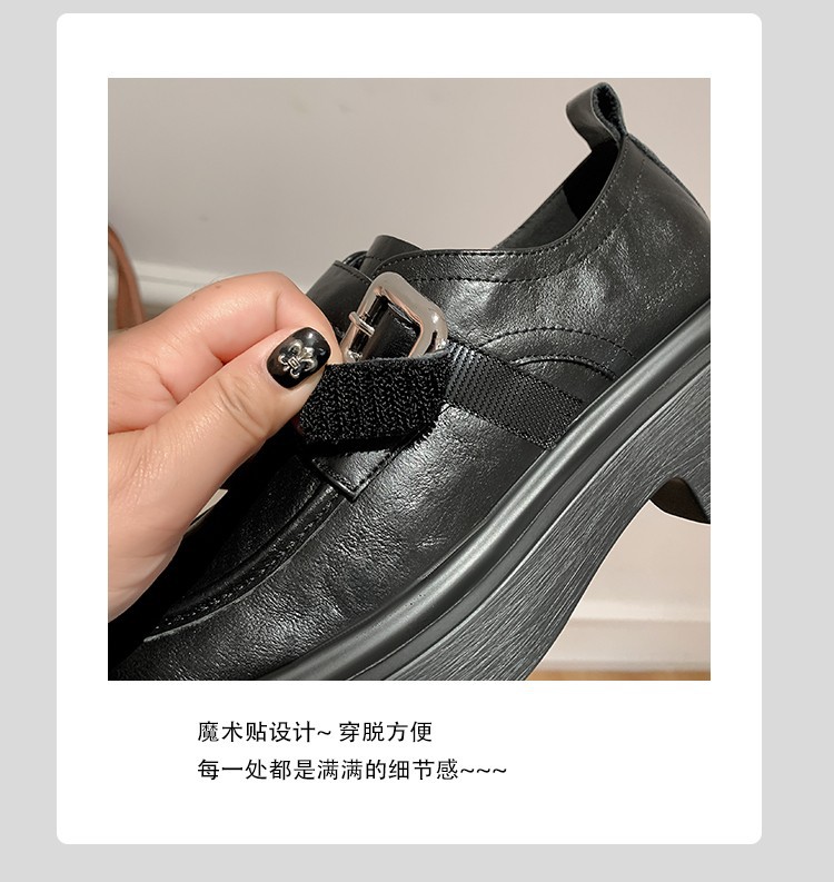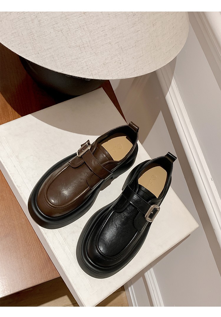 세탁 된 Cowhide 빈티지 슬립 온 두꺼운 밑창 가죽 신발 여성 가을 및 겨울 올 매치 영국 스타일 두꺼운 힐 로퍼 싱글 신발스토어 가기