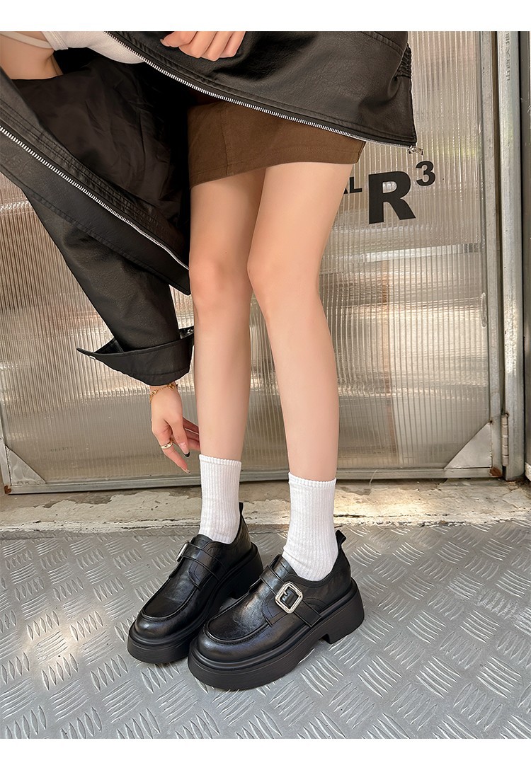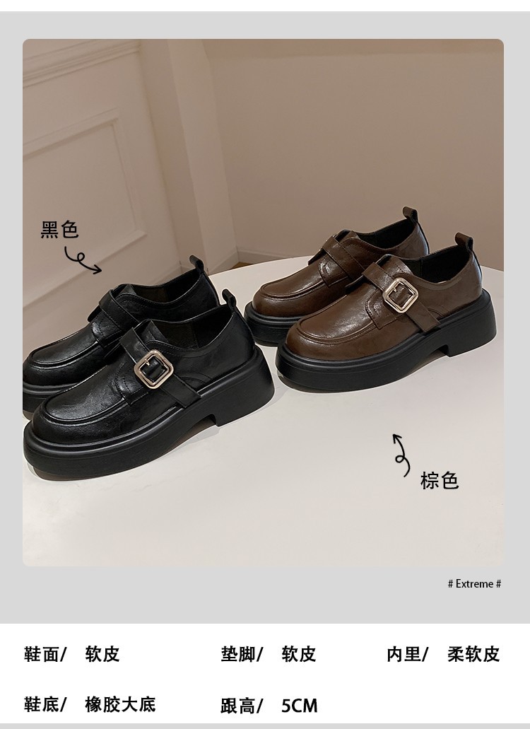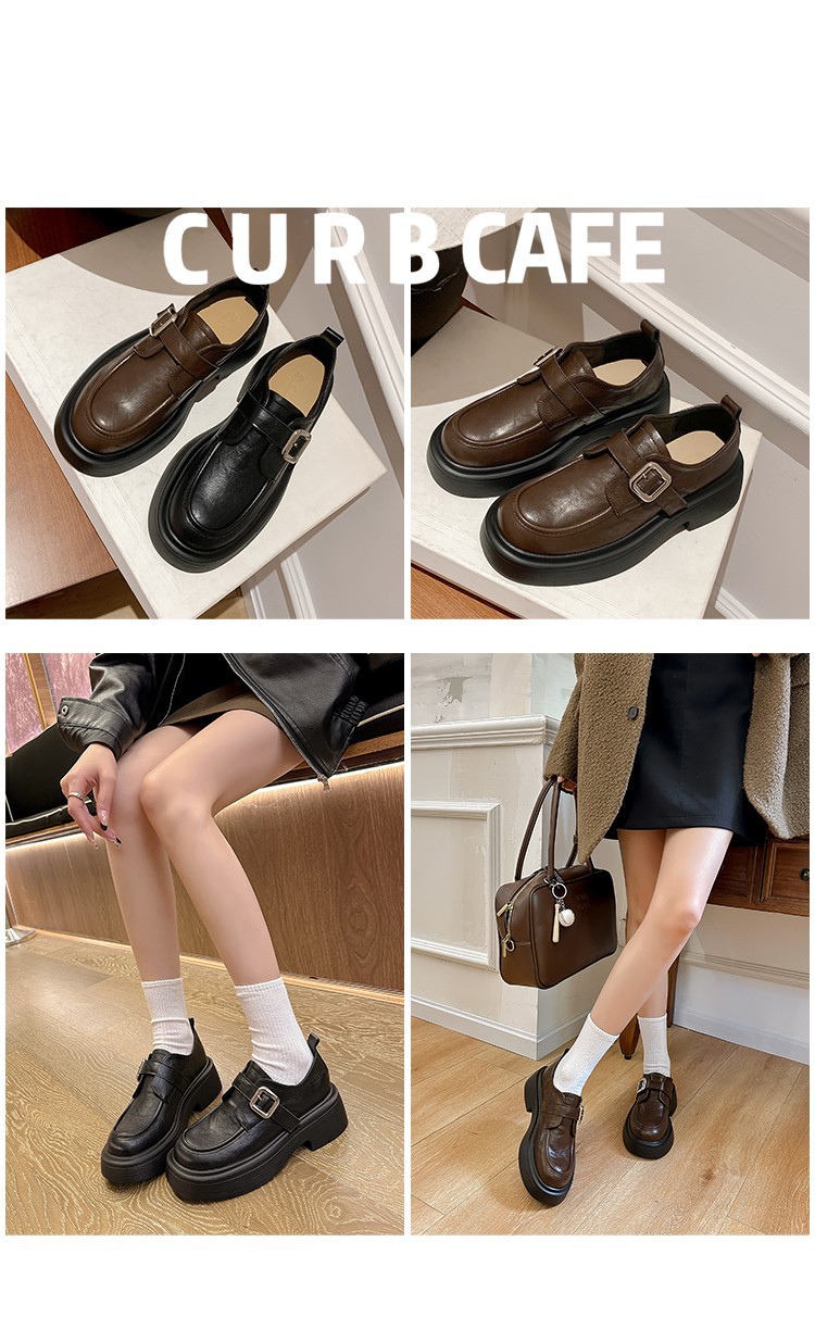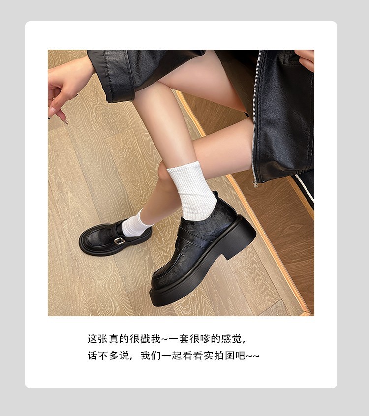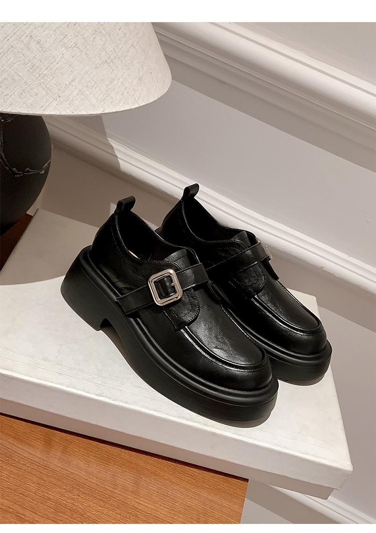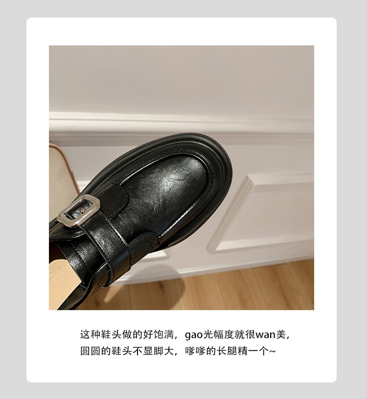 세탁 된 Cowhide 빈티지 슬립 온 두꺼운 밑창 가죽 신발 여성 가을 및 겨울 올 매치 영국 스타일 두꺼운 힐 로퍼 싱글 신발스토어 가기