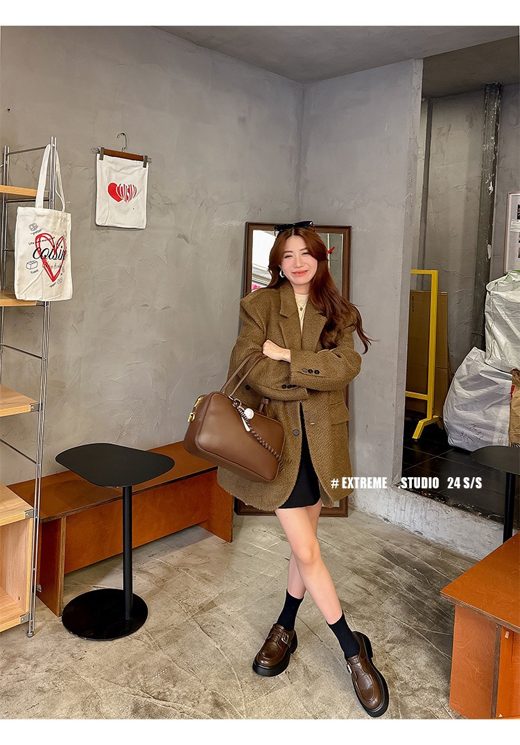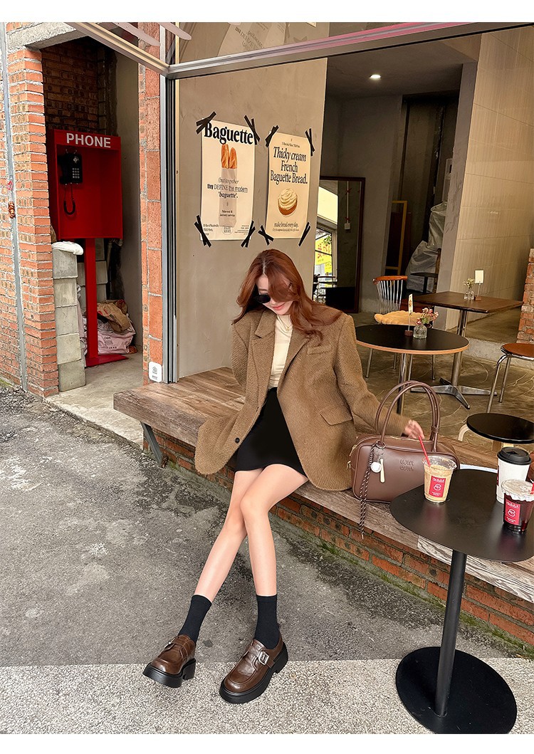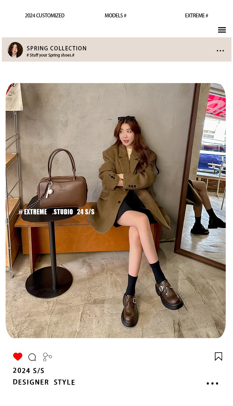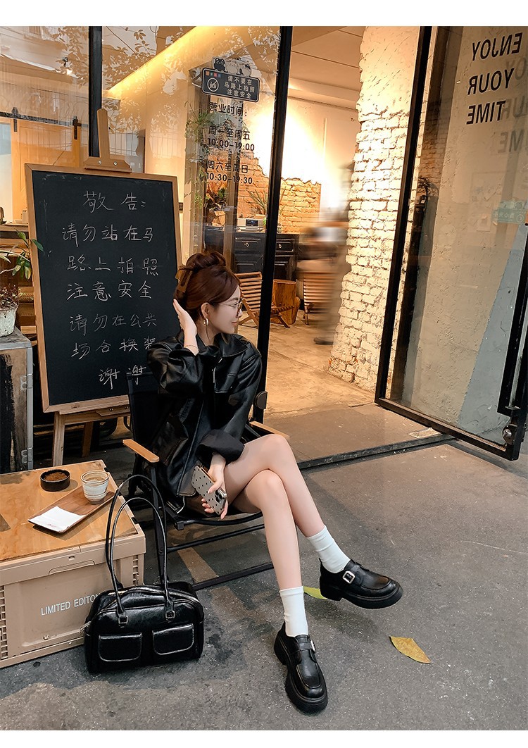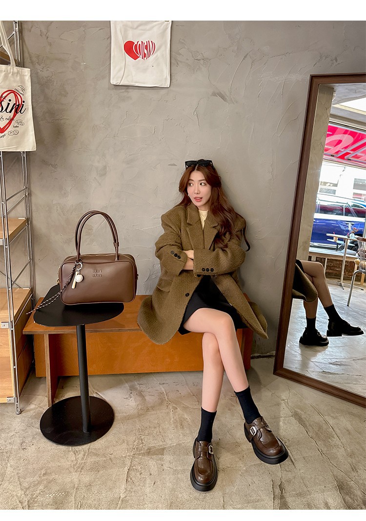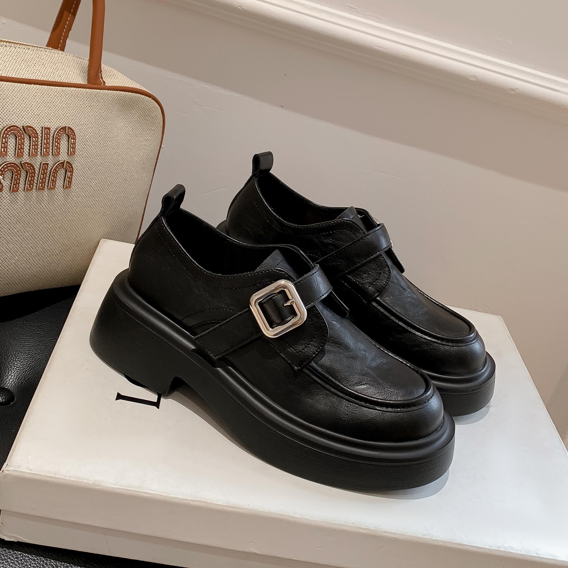 세탁 된 Cowhide 빈티지 슬립 온 두꺼운 밑창 가죽 신발 여성 가을 및 겨울 올 매치 영국 스타일 두꺼운 힐 로퍼 싱글 신발스토어 가기