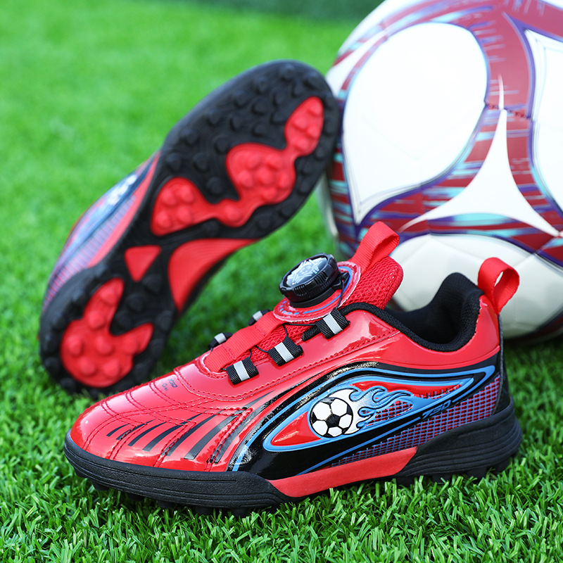 남아용 메시 축구화, 남녀공용 중대형 어린이 축구팀용 스핀버튼 런닝 스포츠 트레이닝 미끄럼 방지