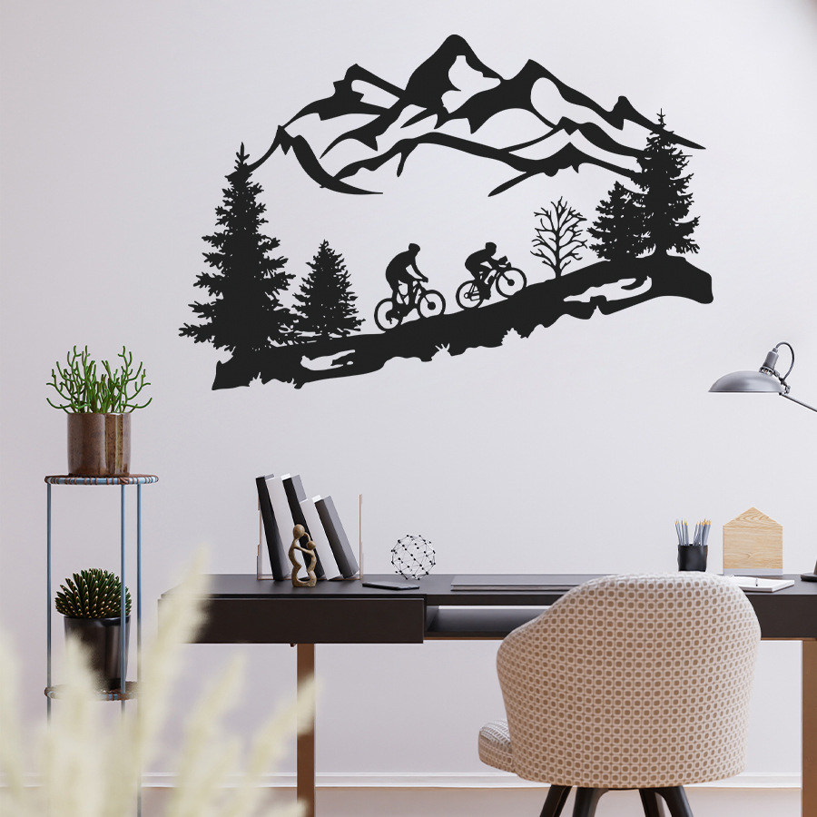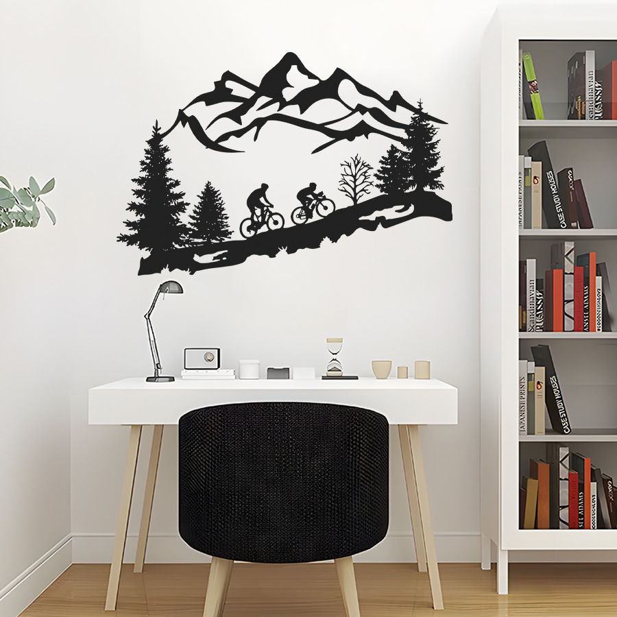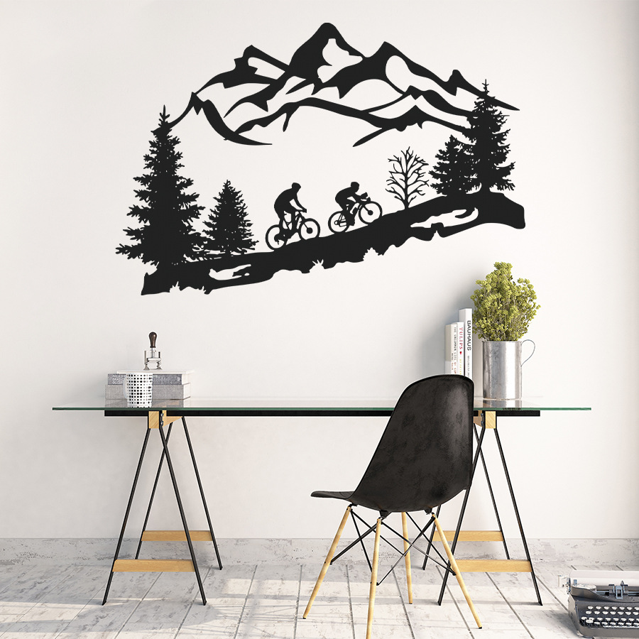 만화 산악 자전거 자연 경관 실루엣 자기 접착 벽 스티커 방 배경 벽 장식 스티커 ZN3197E