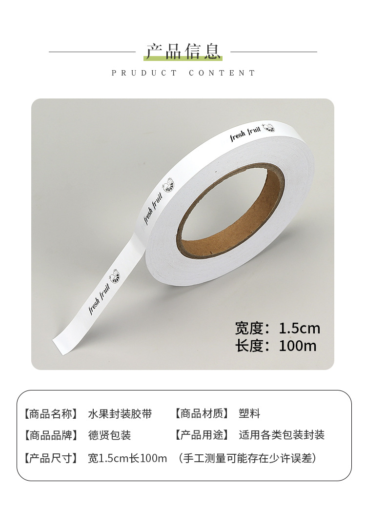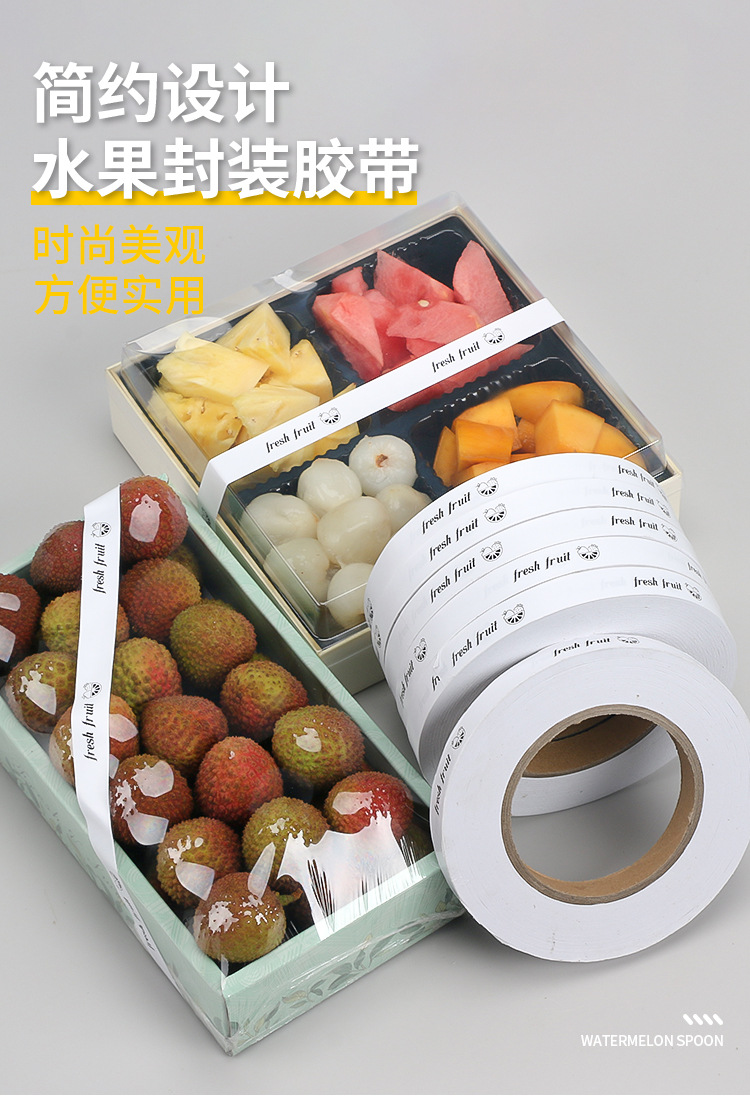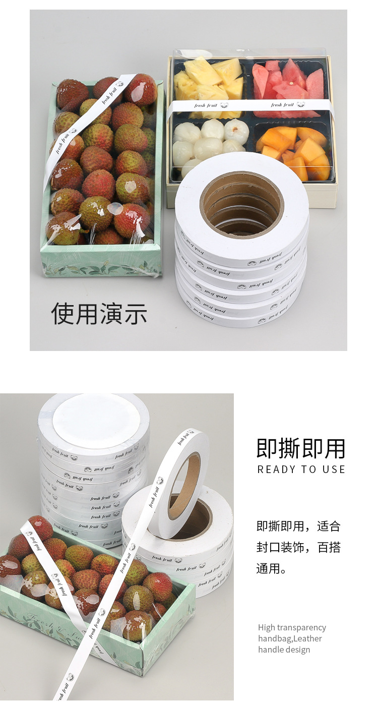 과일 가게 슈퍼 테이크 아웃 과일 커팅 박스 고정 밀봉 흰색 테이프 과일 및 야채 영어 장식 비 건조 테이프