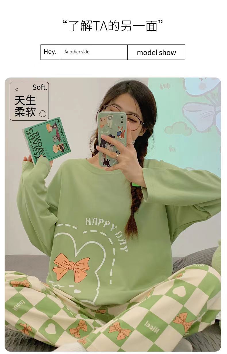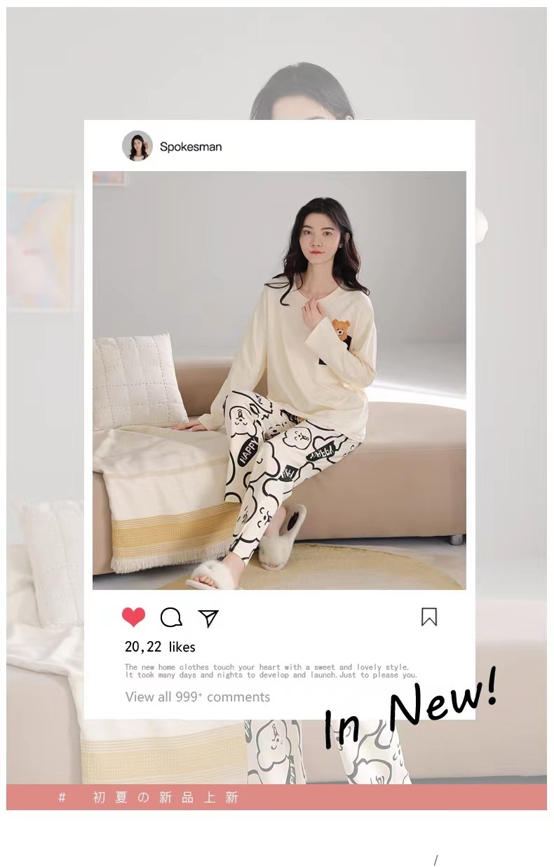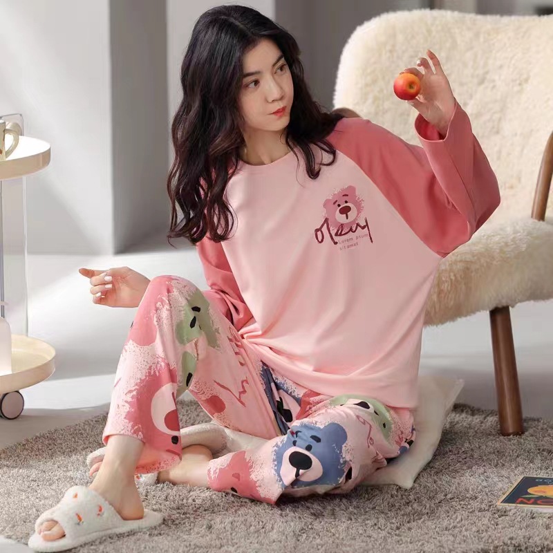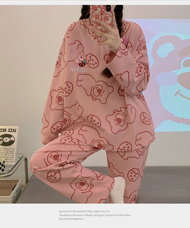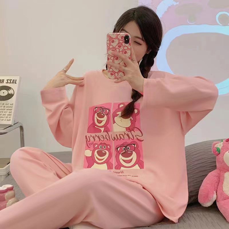 2024 새로운 봄과 가을 잠옷 여성의 가을 긴 소매 플러스 사이즈 얇은 만화 귀여운 딸기 곰 홈 의류 여성스토어 가기