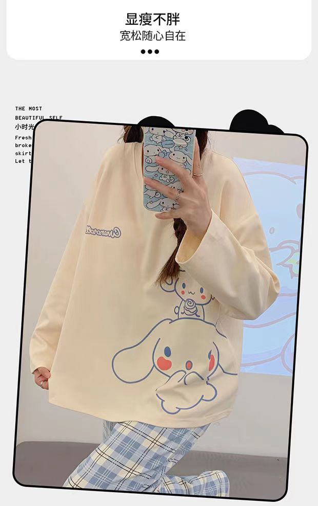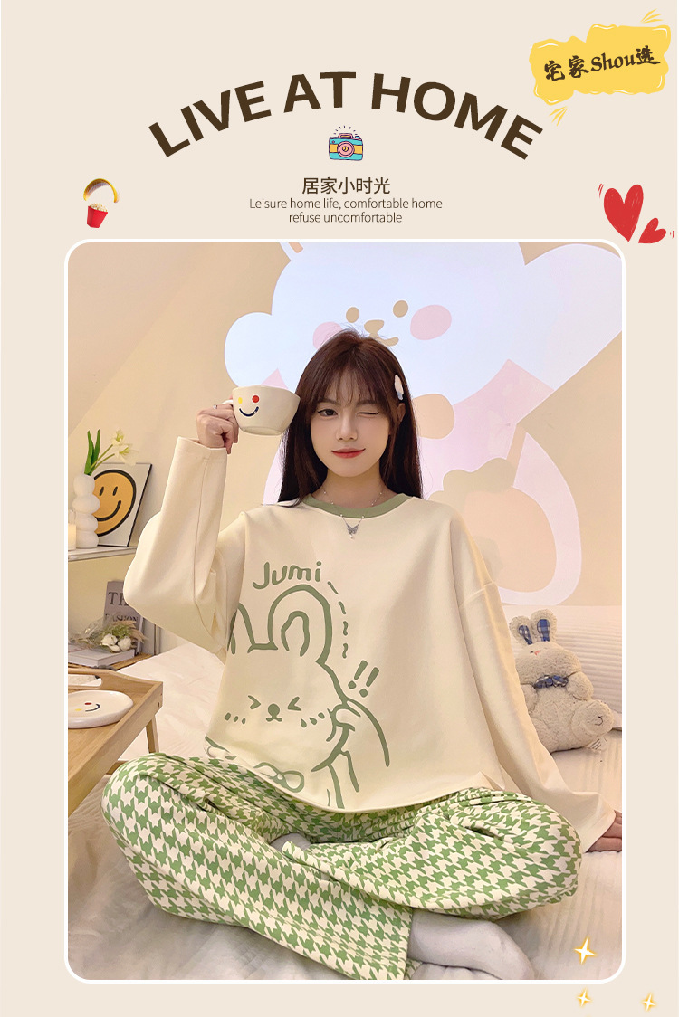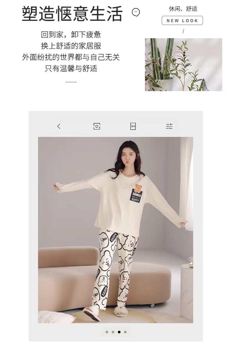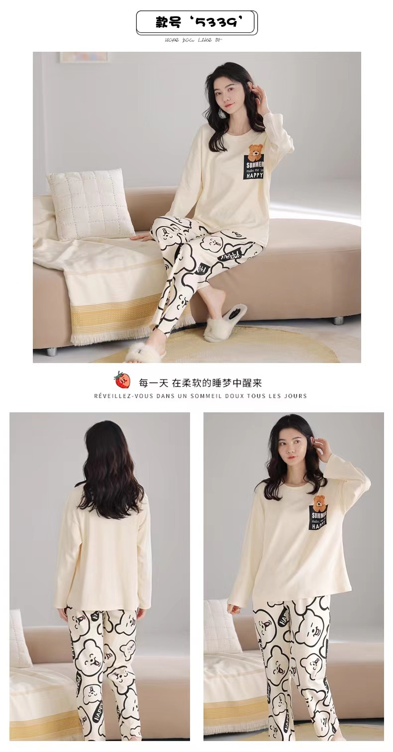 2024 새로운 봄과 가을 잠옷 여성의 가을 긴 소매 플러스 사이즈 얇은 만화 귀여운 딸기 곰 홈 의류 여성스토어 가기
