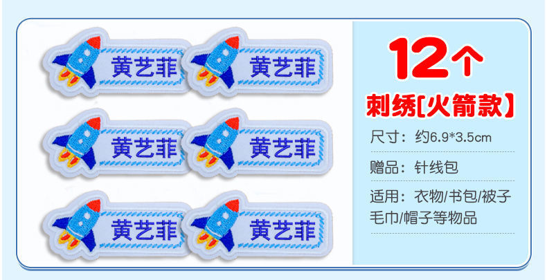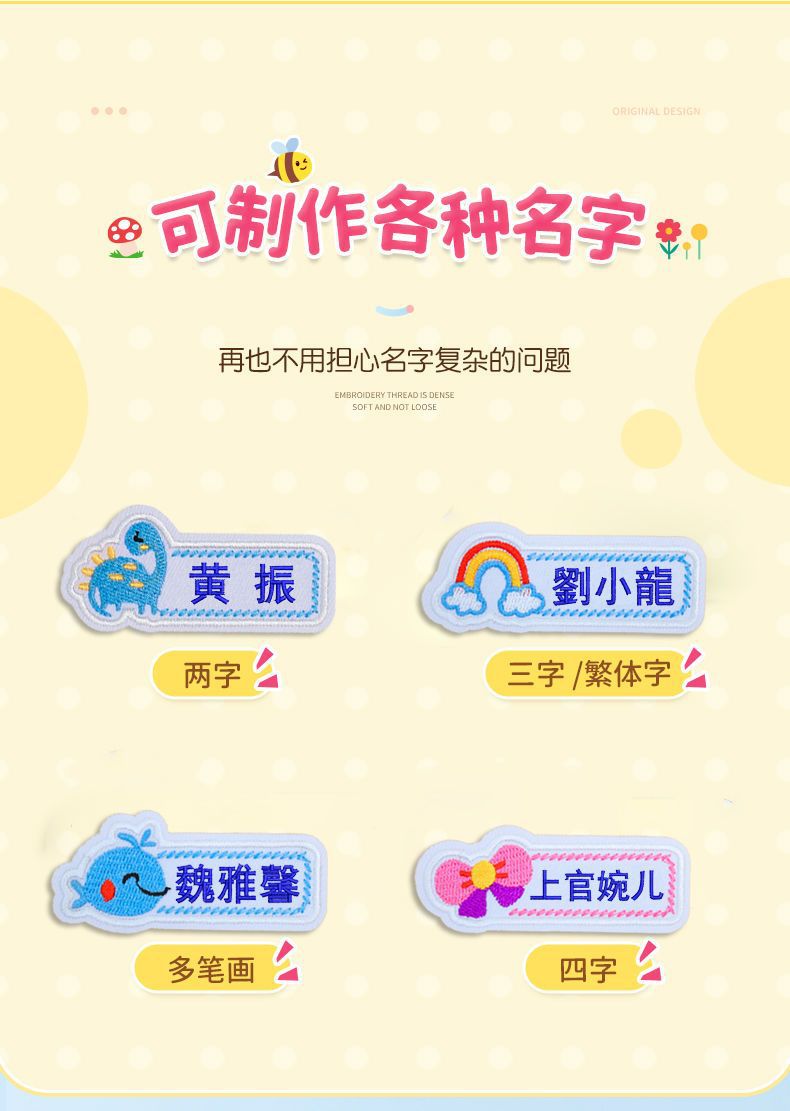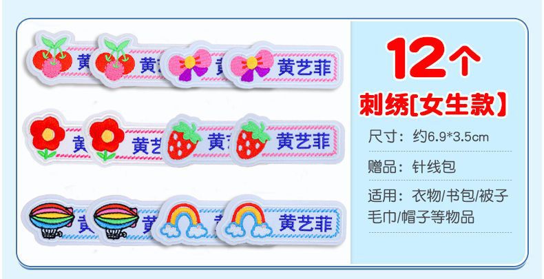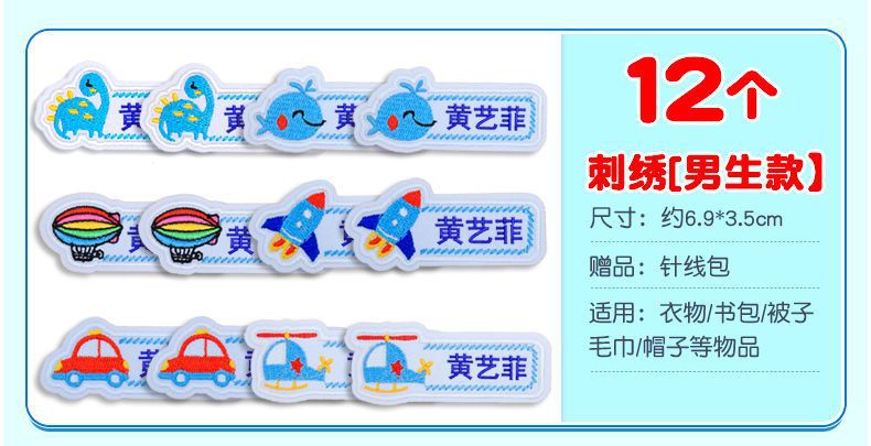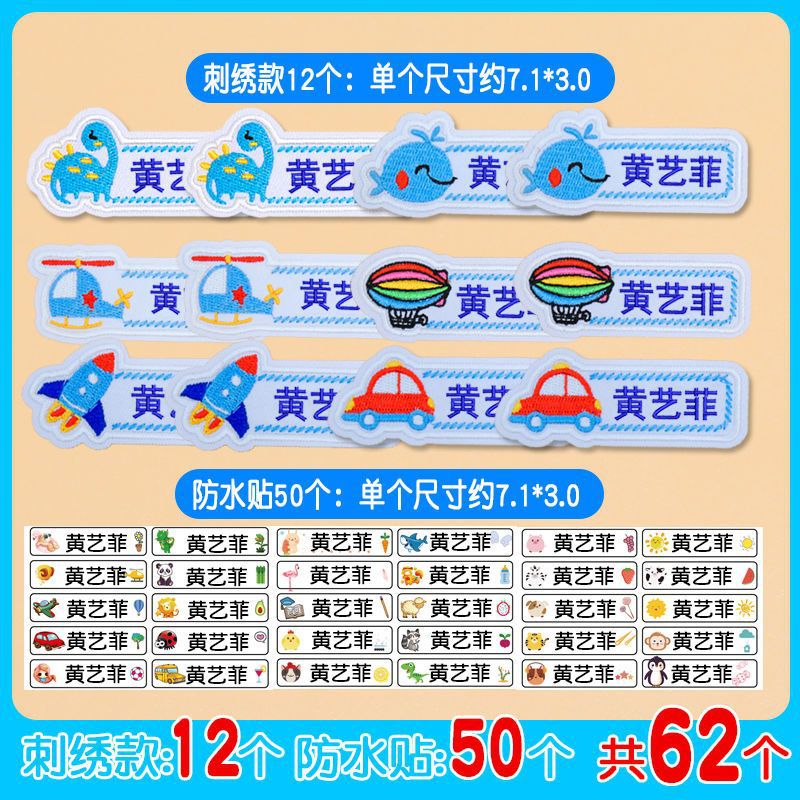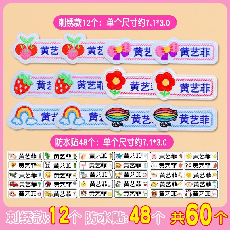 유치원 이름 스티커 바느질 어린이 학교 유니폼 아기 이름 스티커 자수 바느질 옷 방수 이름 Jie Qi