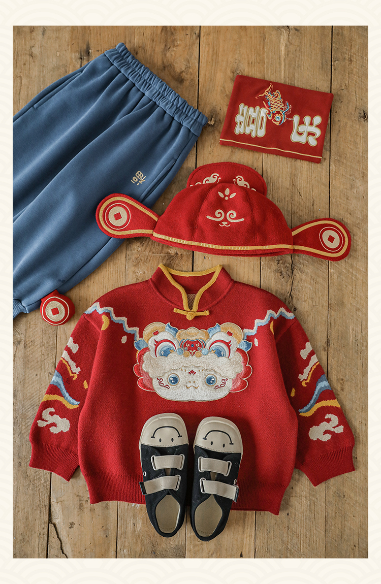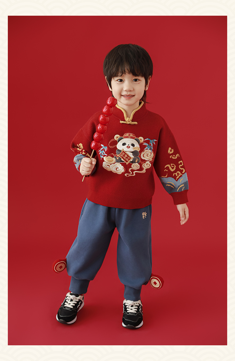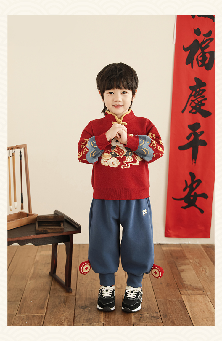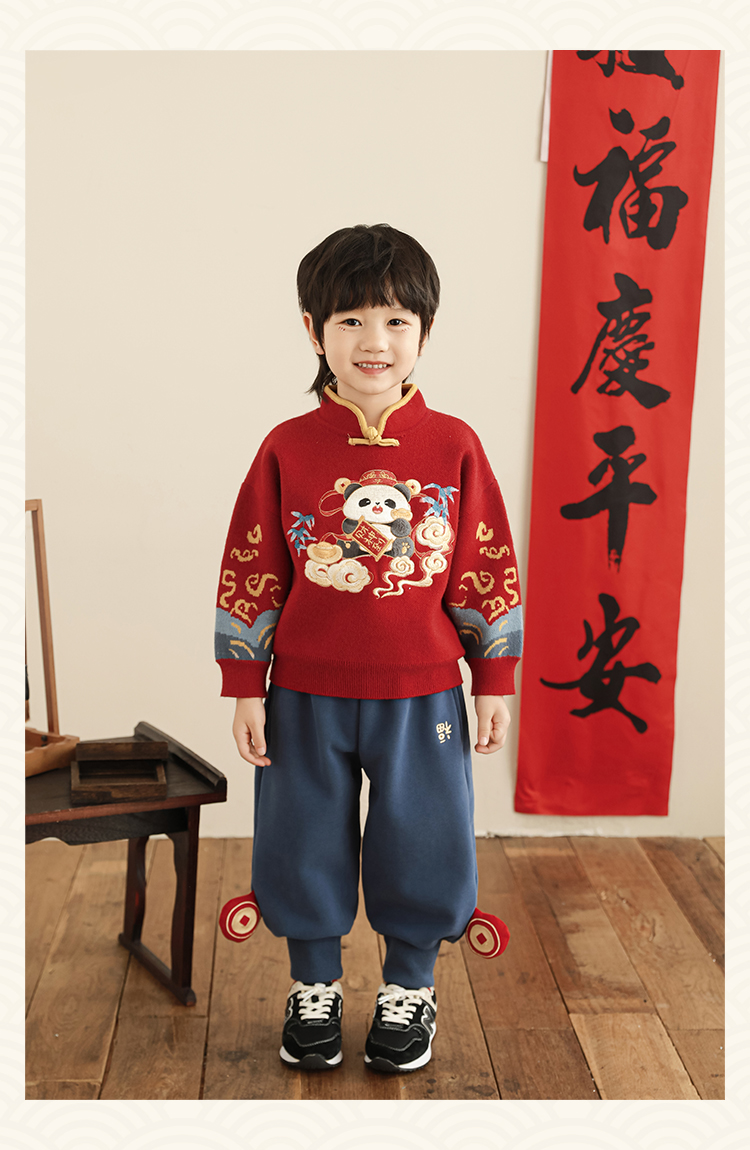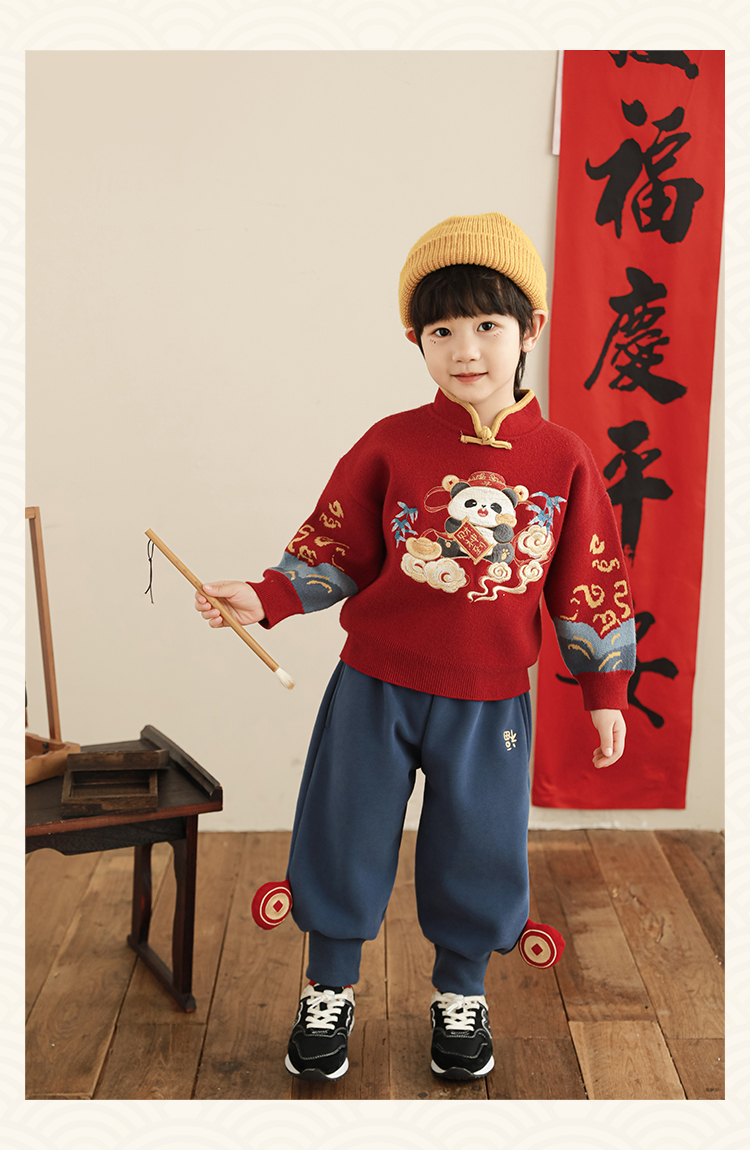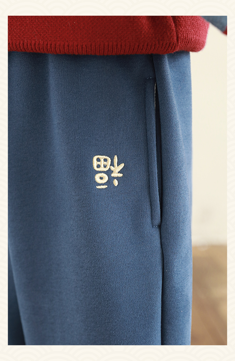 Wulibu Yinan 2025 새로운 따뜻한 부의 신 빨간색 새해 의상 스웨터 겨울 패션 플러스 벨벳 레깅스 팬츠 트렌디스토어 가기