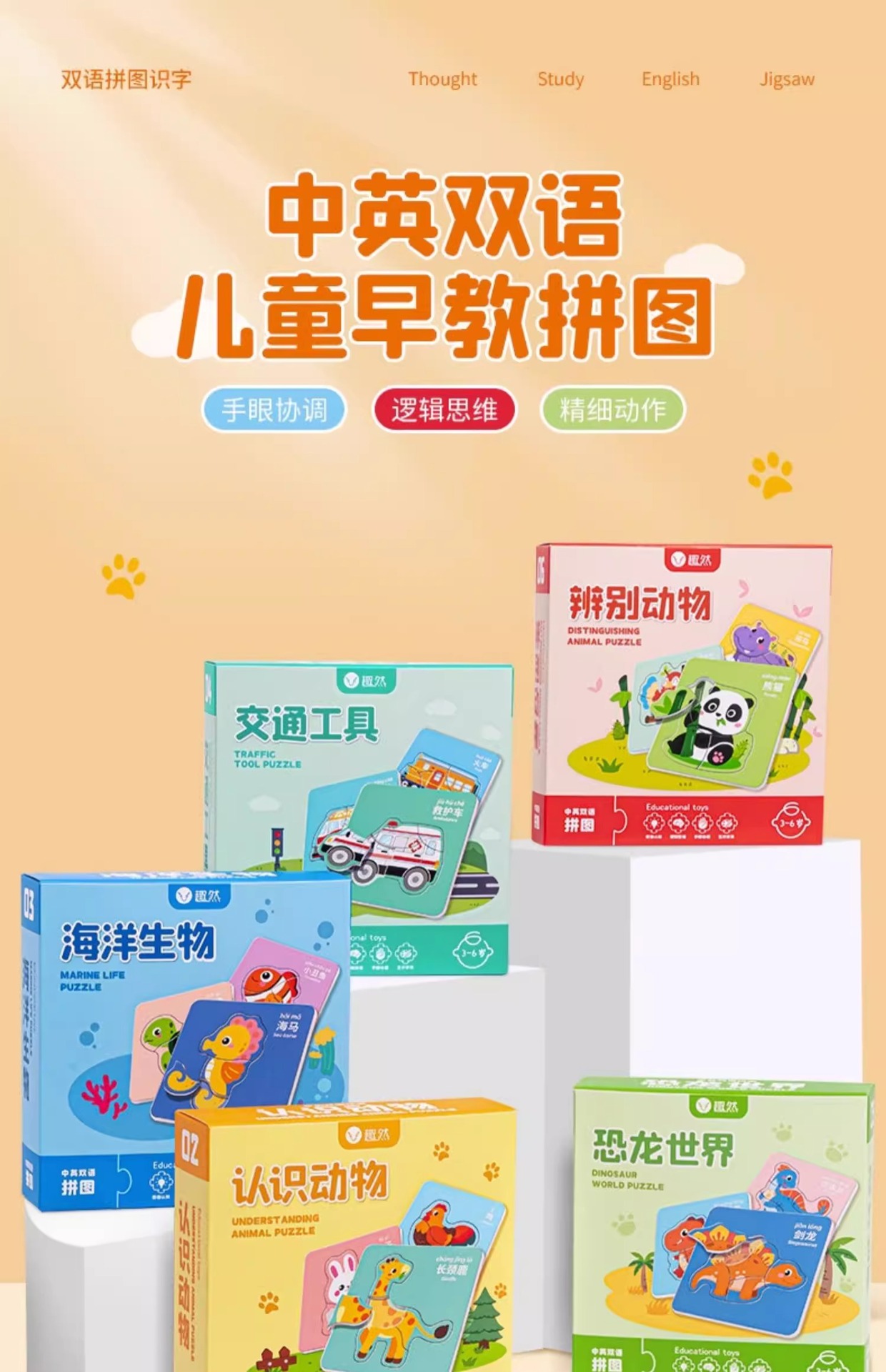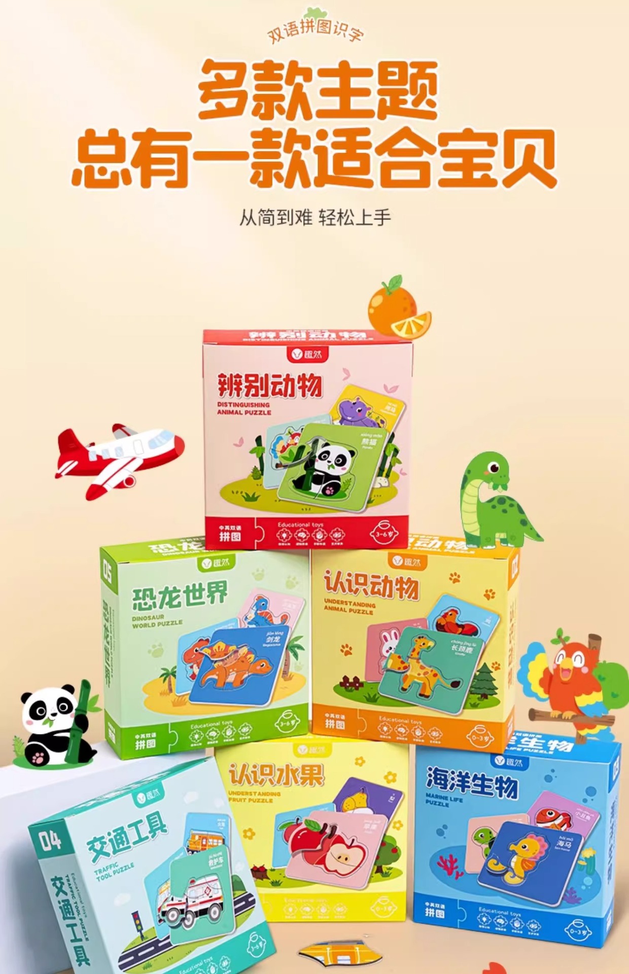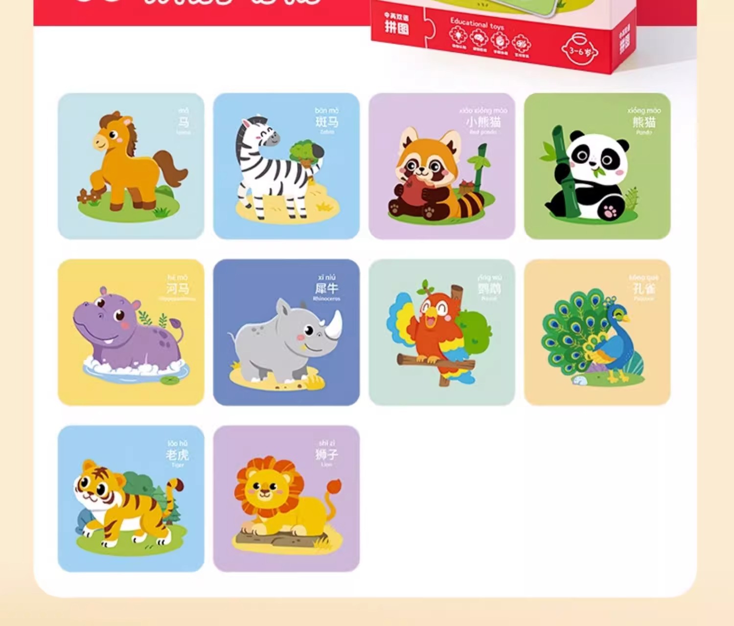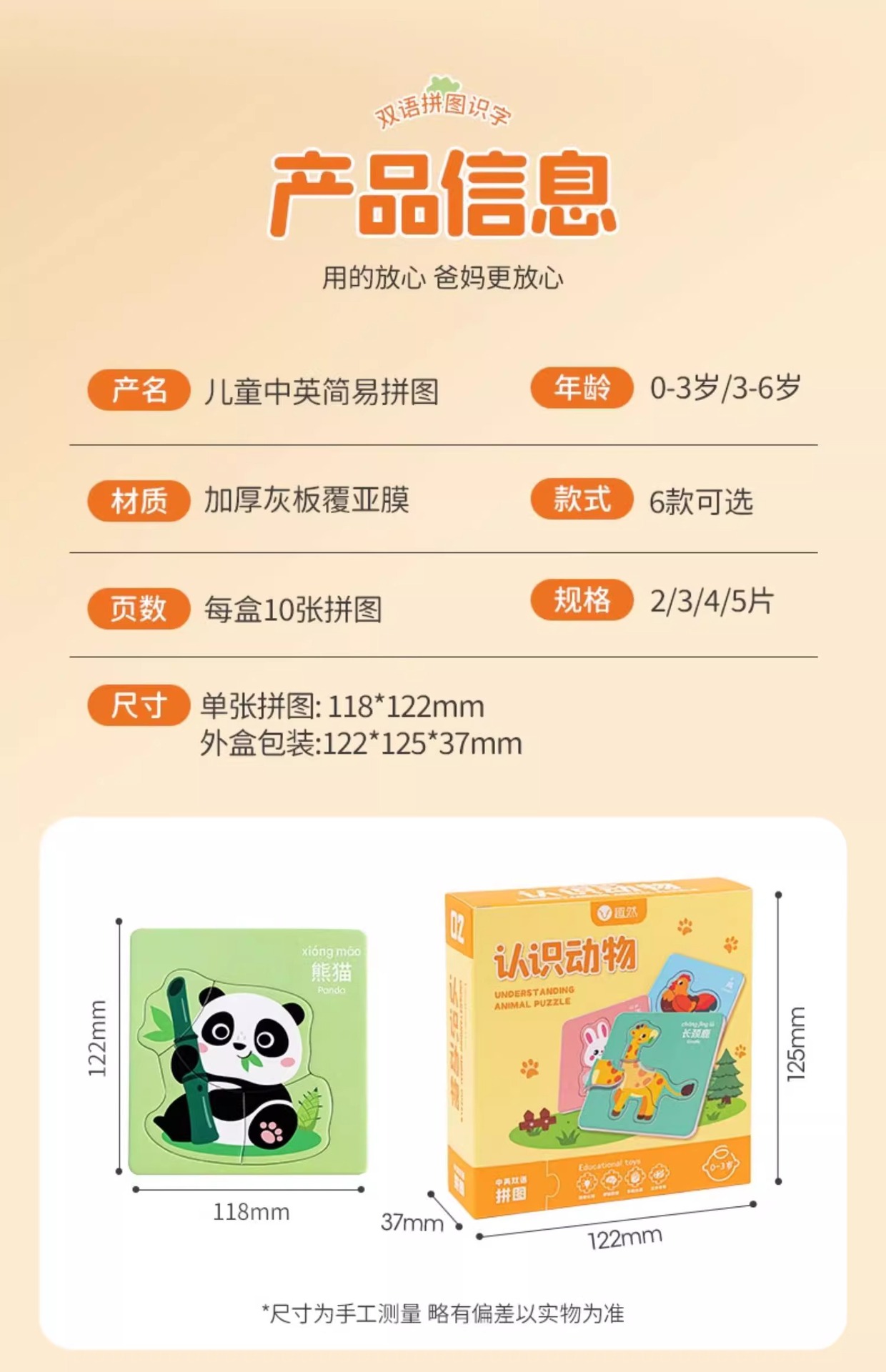 어린이 퍼즐 3-6 세 아기 입학 수준 동물 평면 그림 2 어린이 0-3 조기 교육 소년 소녀 장난감스토어 가기